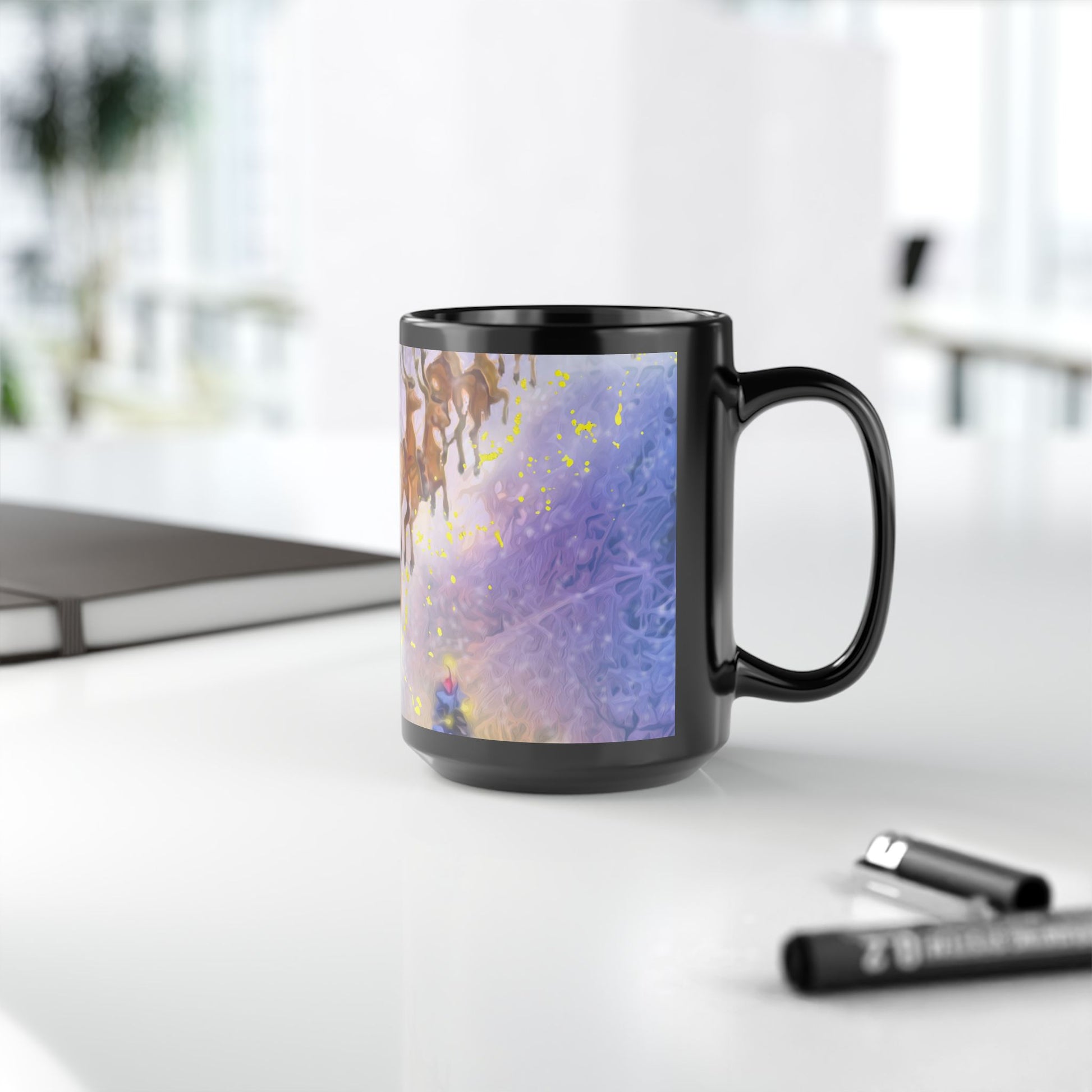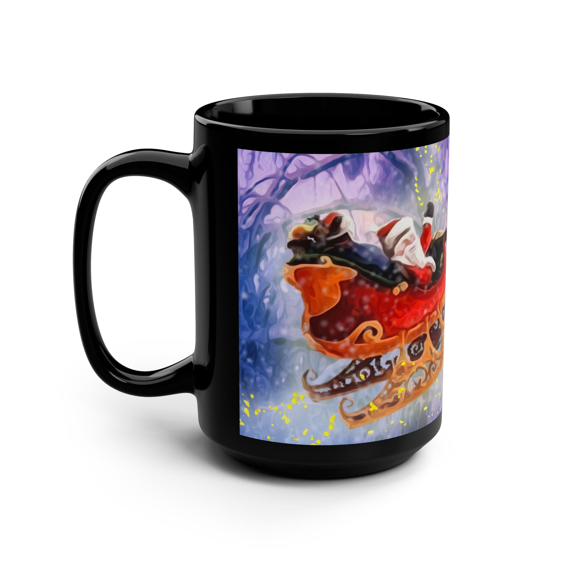 These black mugs come in one size – 15oz (0.44l) – plenty for morning caffeine boosts and hot cups of coco on a snowy day. They're easy to grip and feel sturdy thanks to the C-shaped handle. Dishwasher and microwave safe, they are a perfect gift for the Christmas loving people and your Kids.