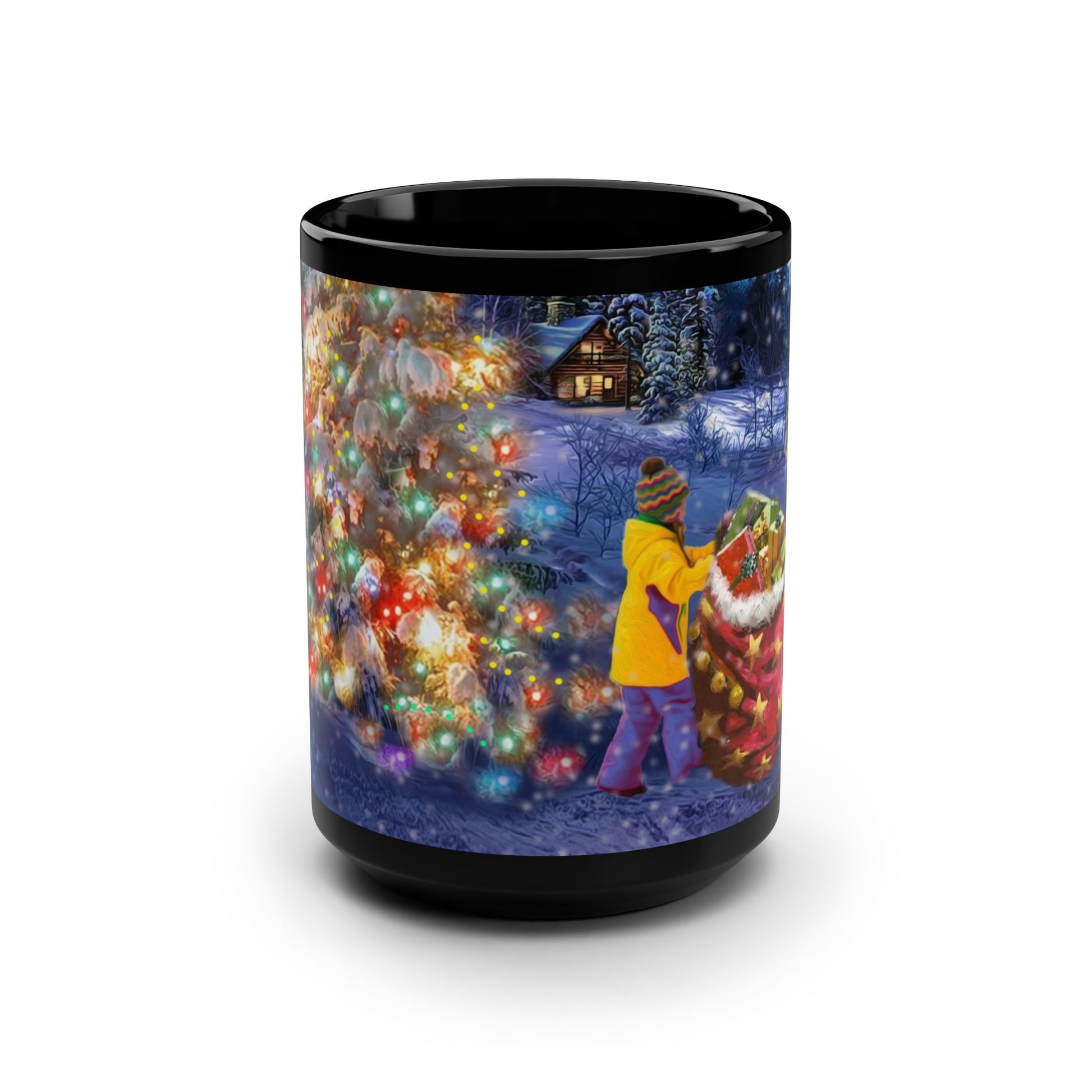 15oz Black Mug - Santa Hiding