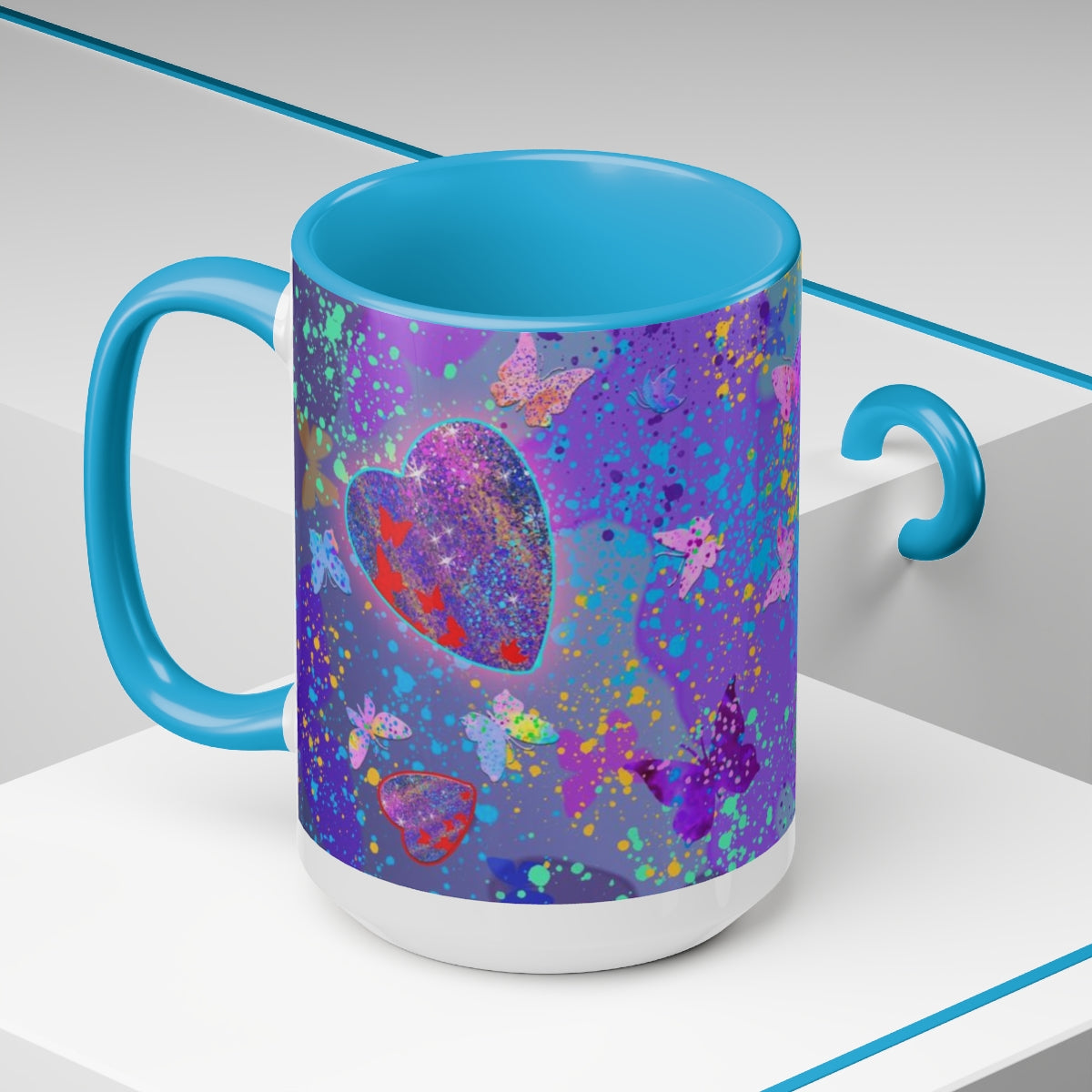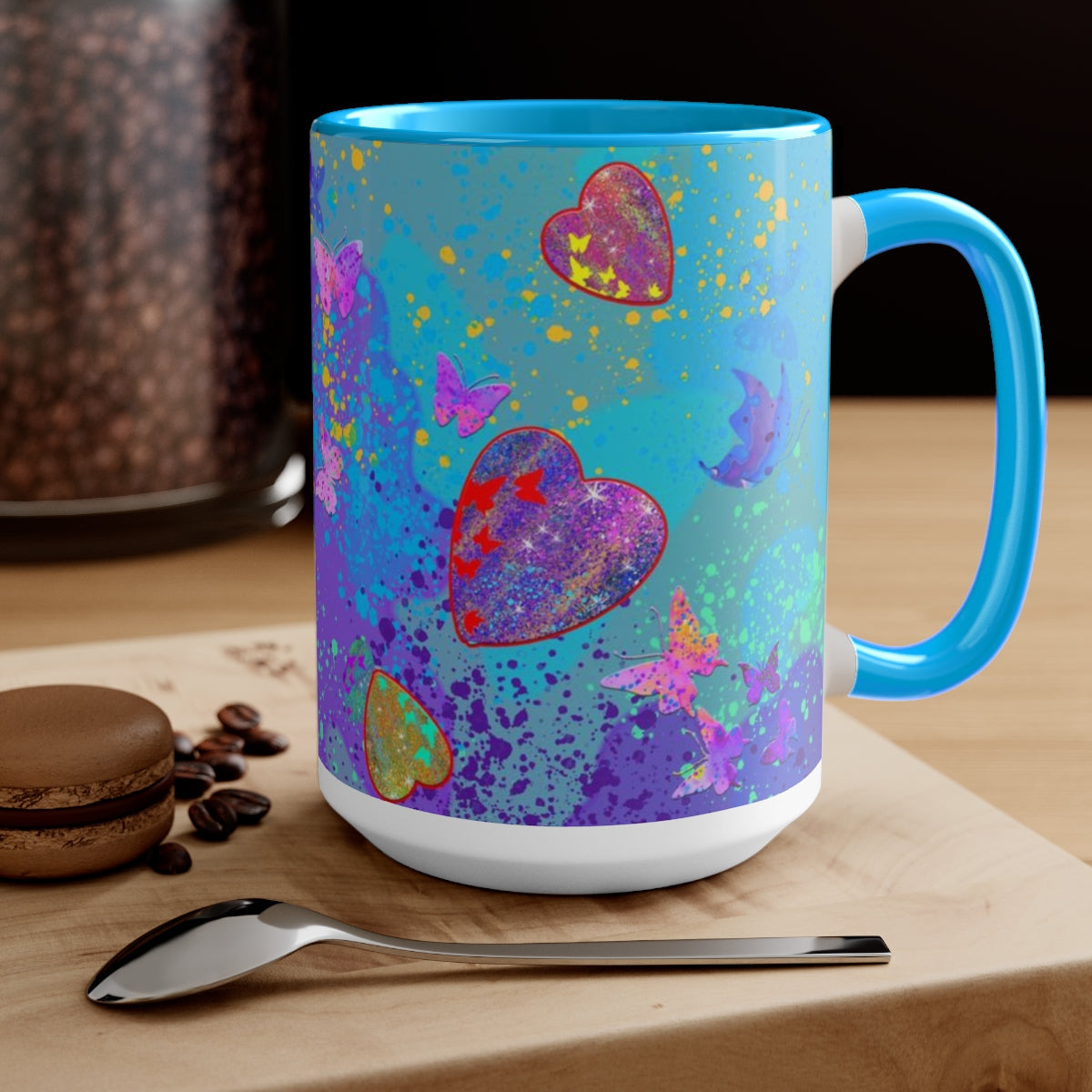 15oz Two-Tone Coffee Mugs - Hearts/Butterflies