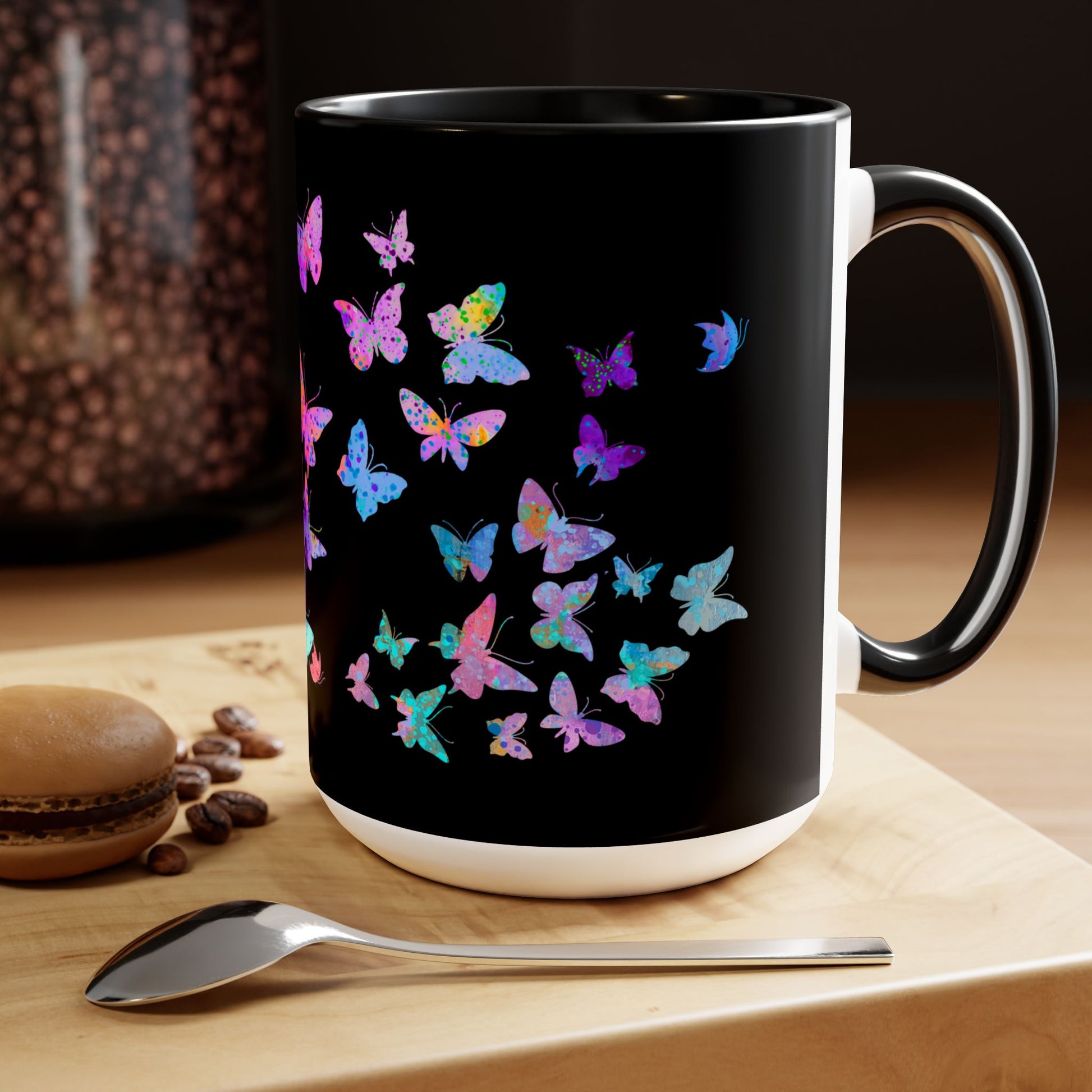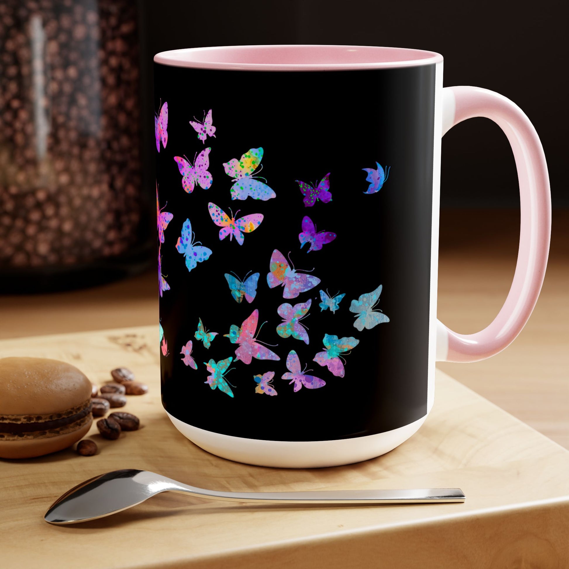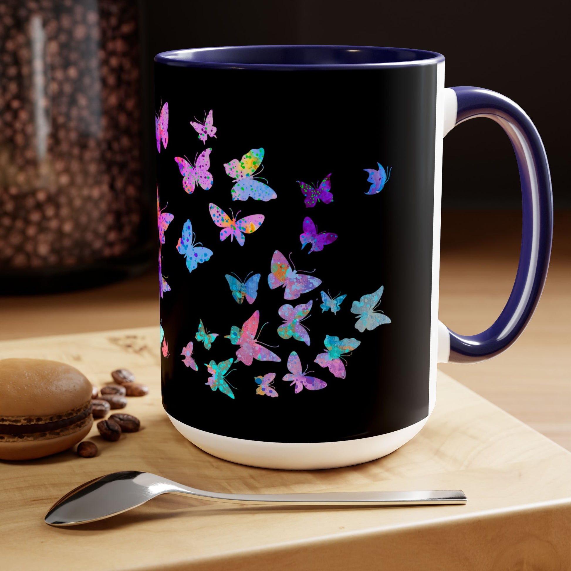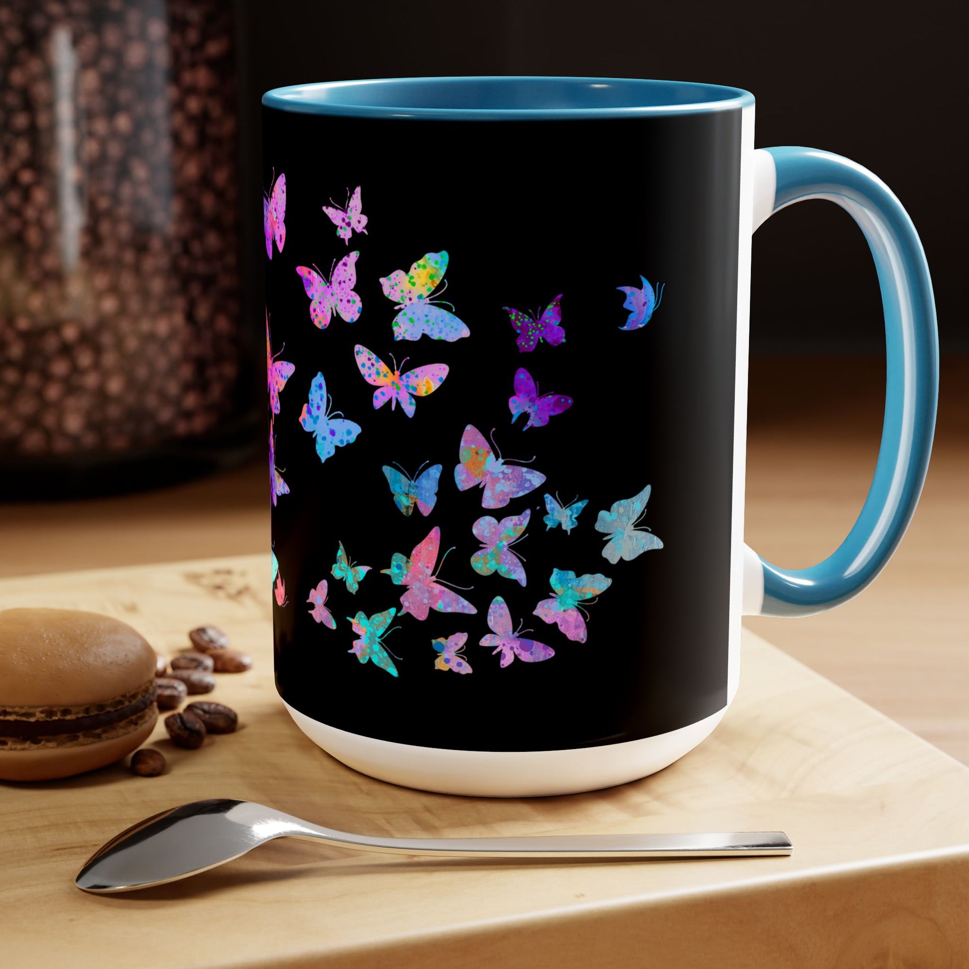 Here to bring big gulps of coffee and style, these two-tone coffee mugs help people around the world start the day just right. Choose between 5 different color options. Each mug comes with a colored handle, a colored interior, and a classy, glossy finish so that your mugs become an instant favorite.
