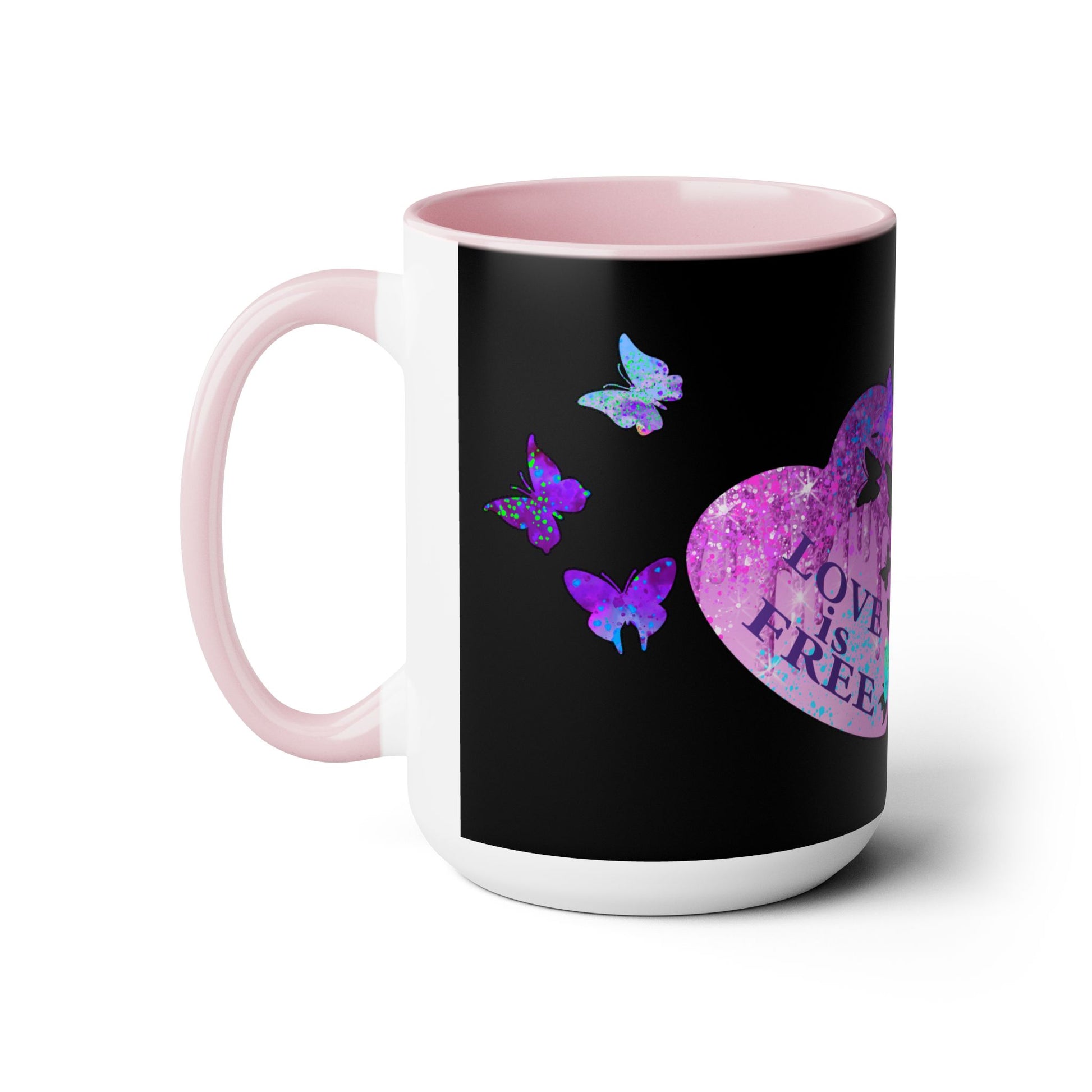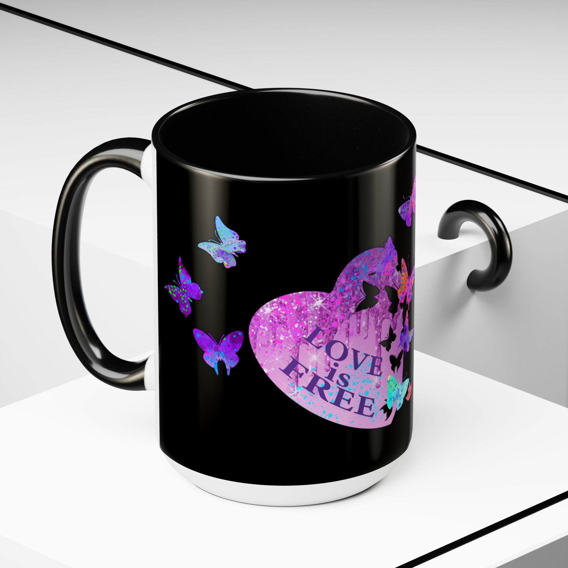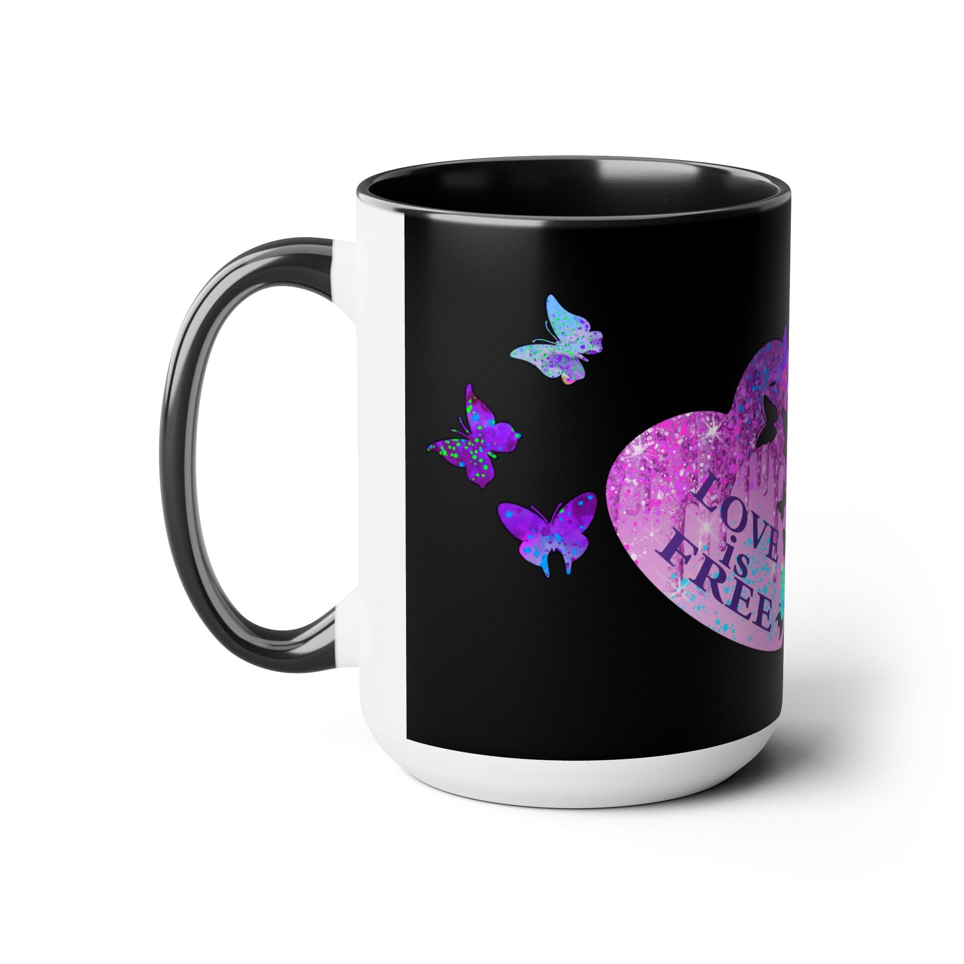 15oz Two-Tone Coffee Mugs - Love is FREE