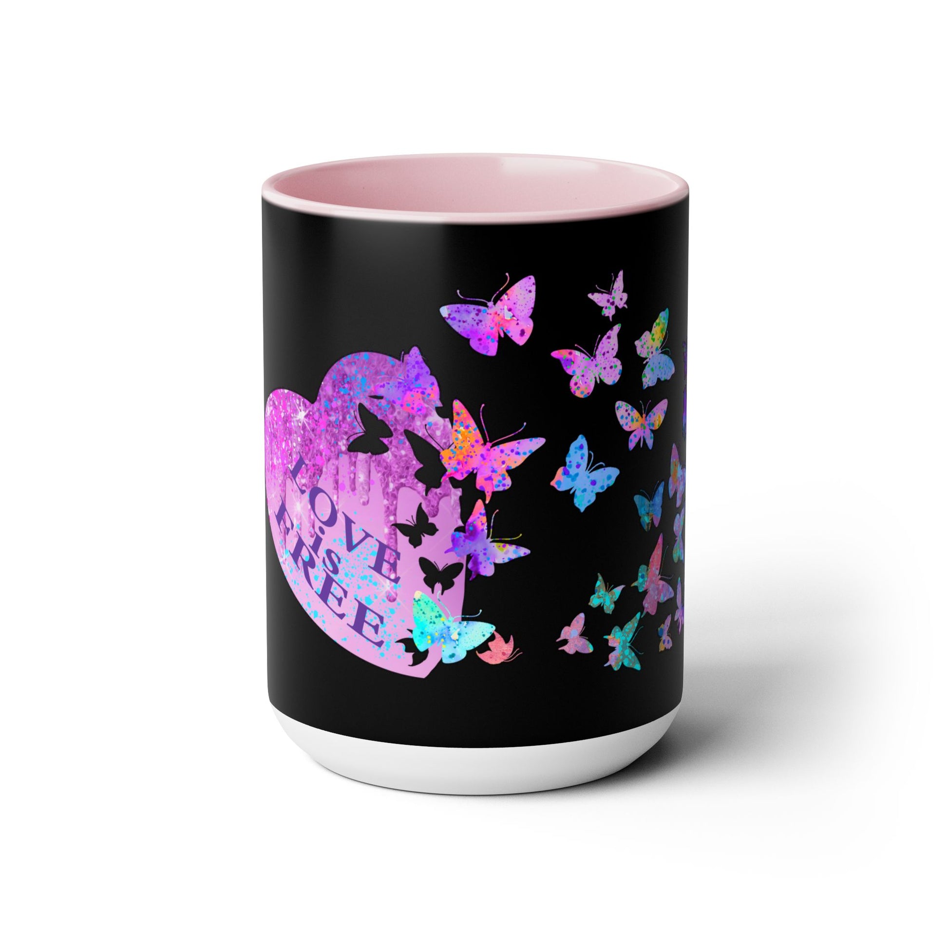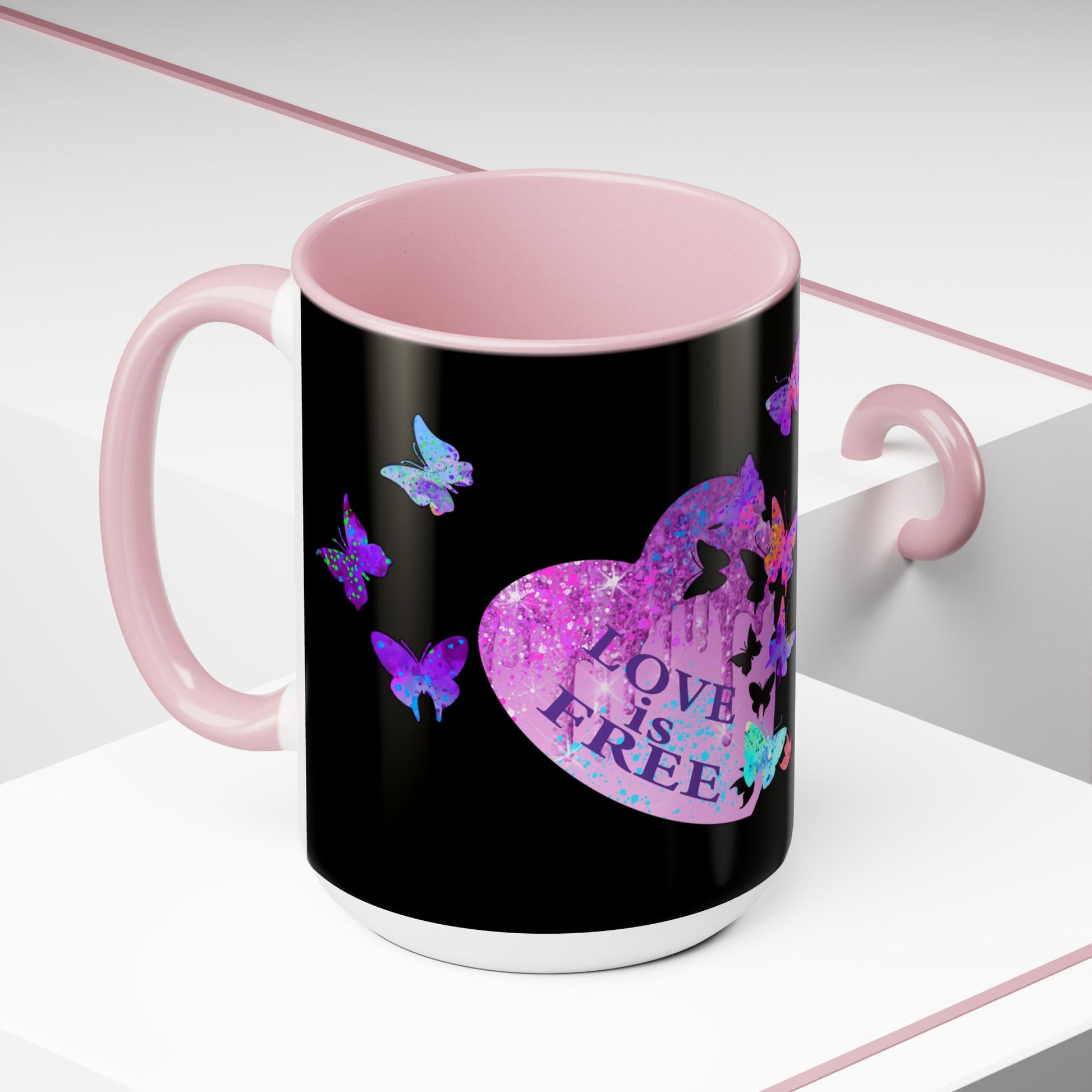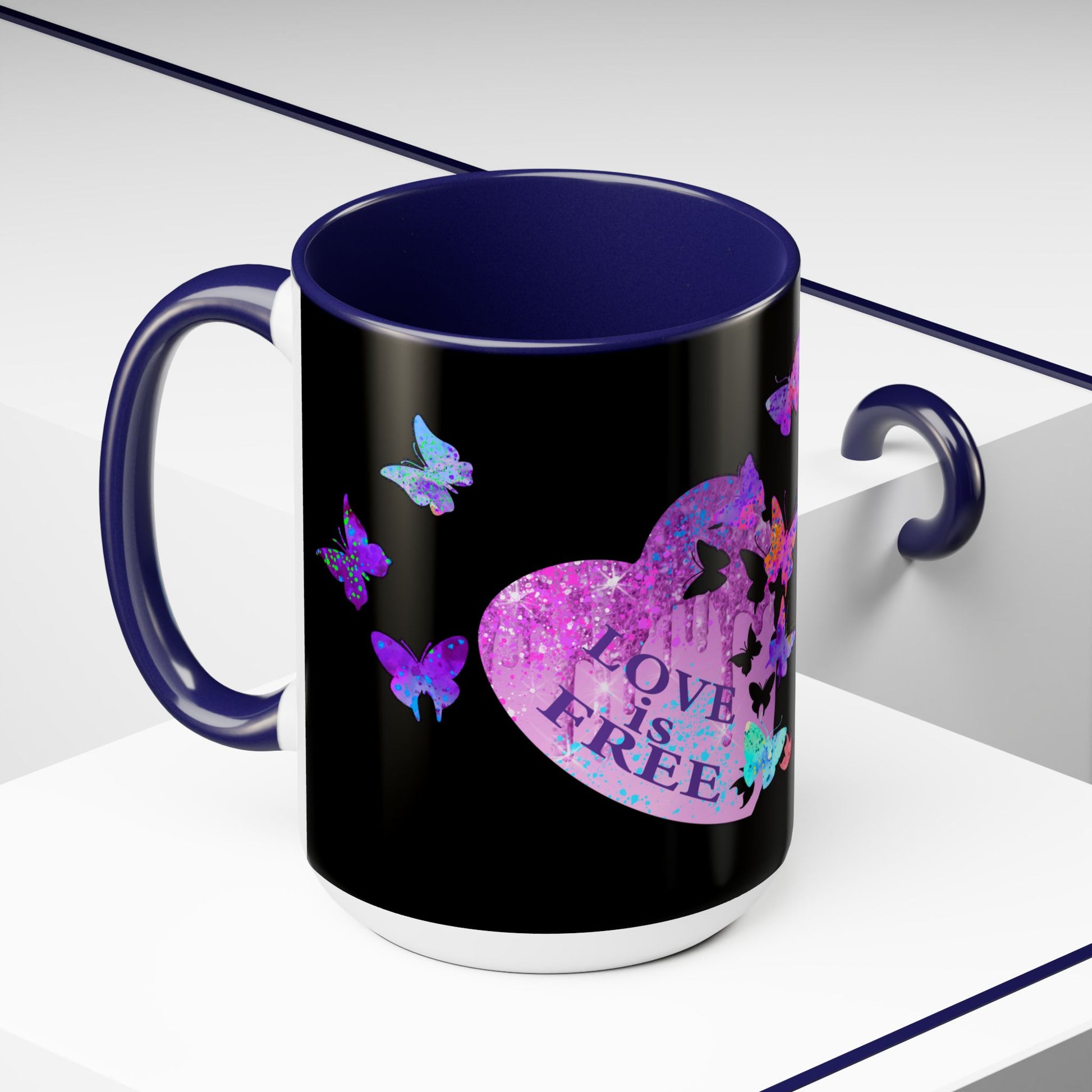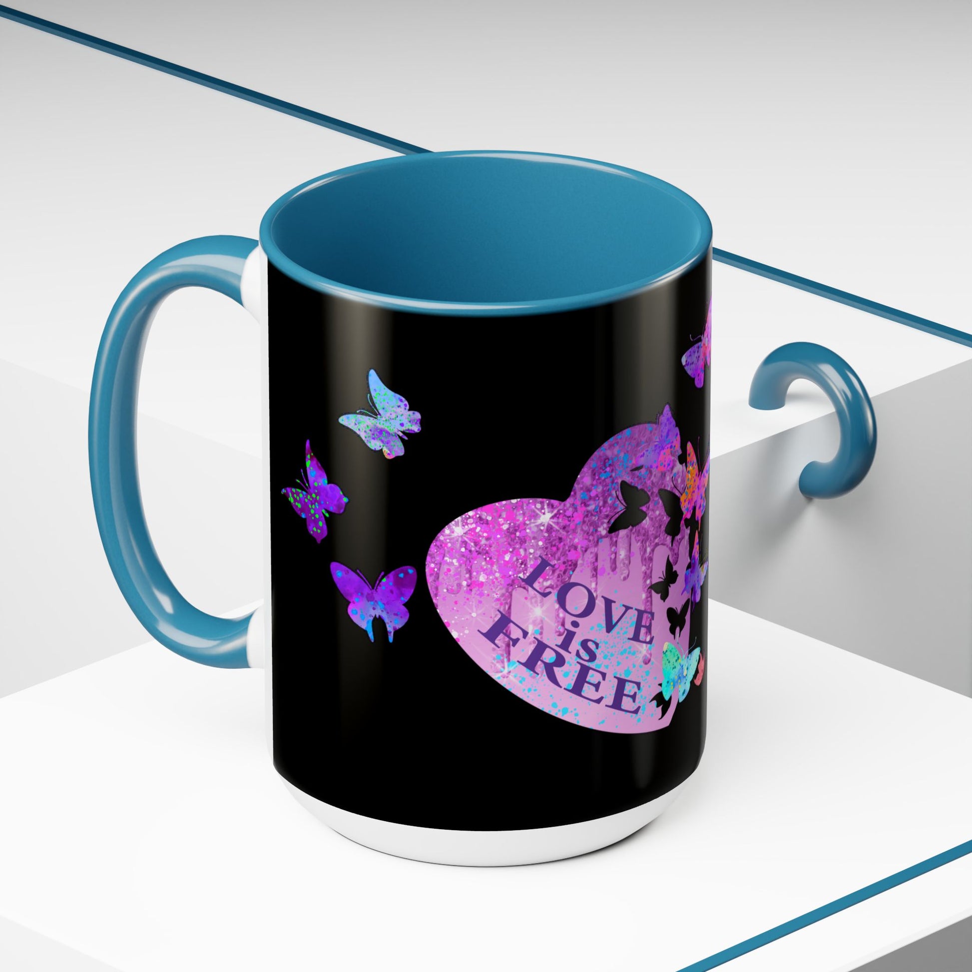 15oz Two-Tone Coffee Mugs - Love is FREE