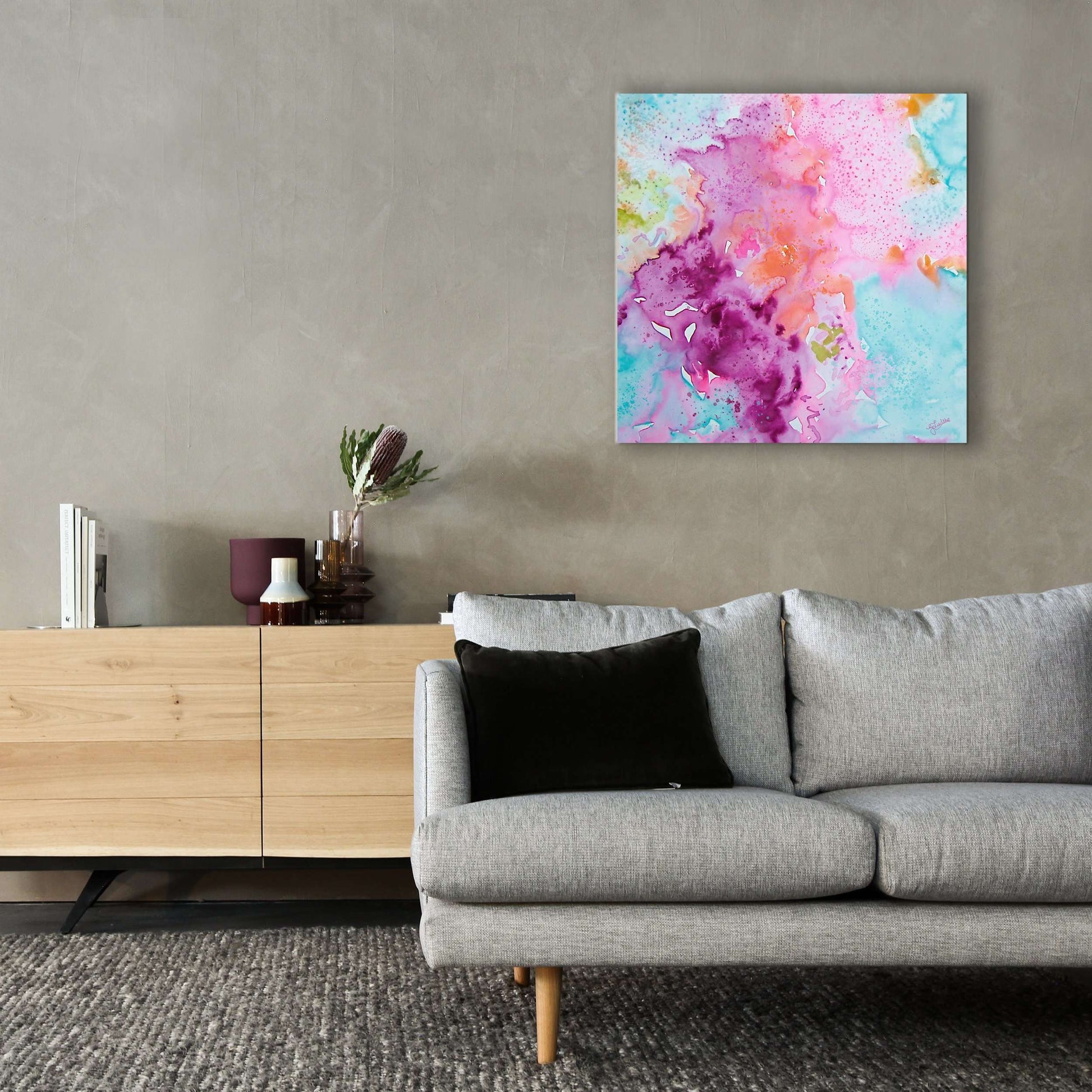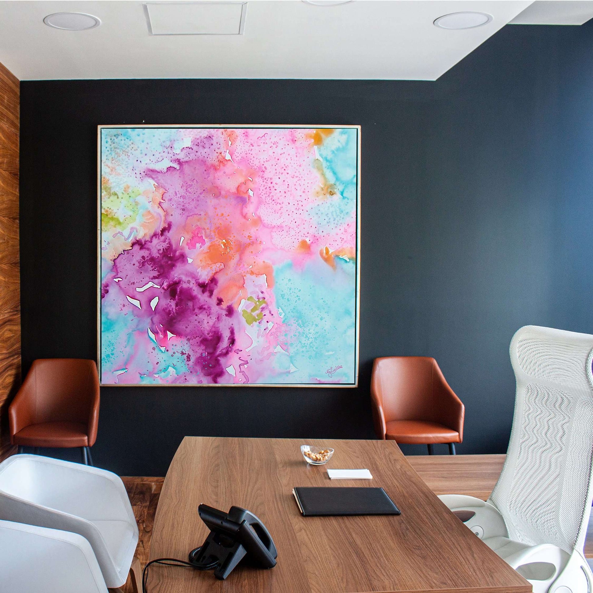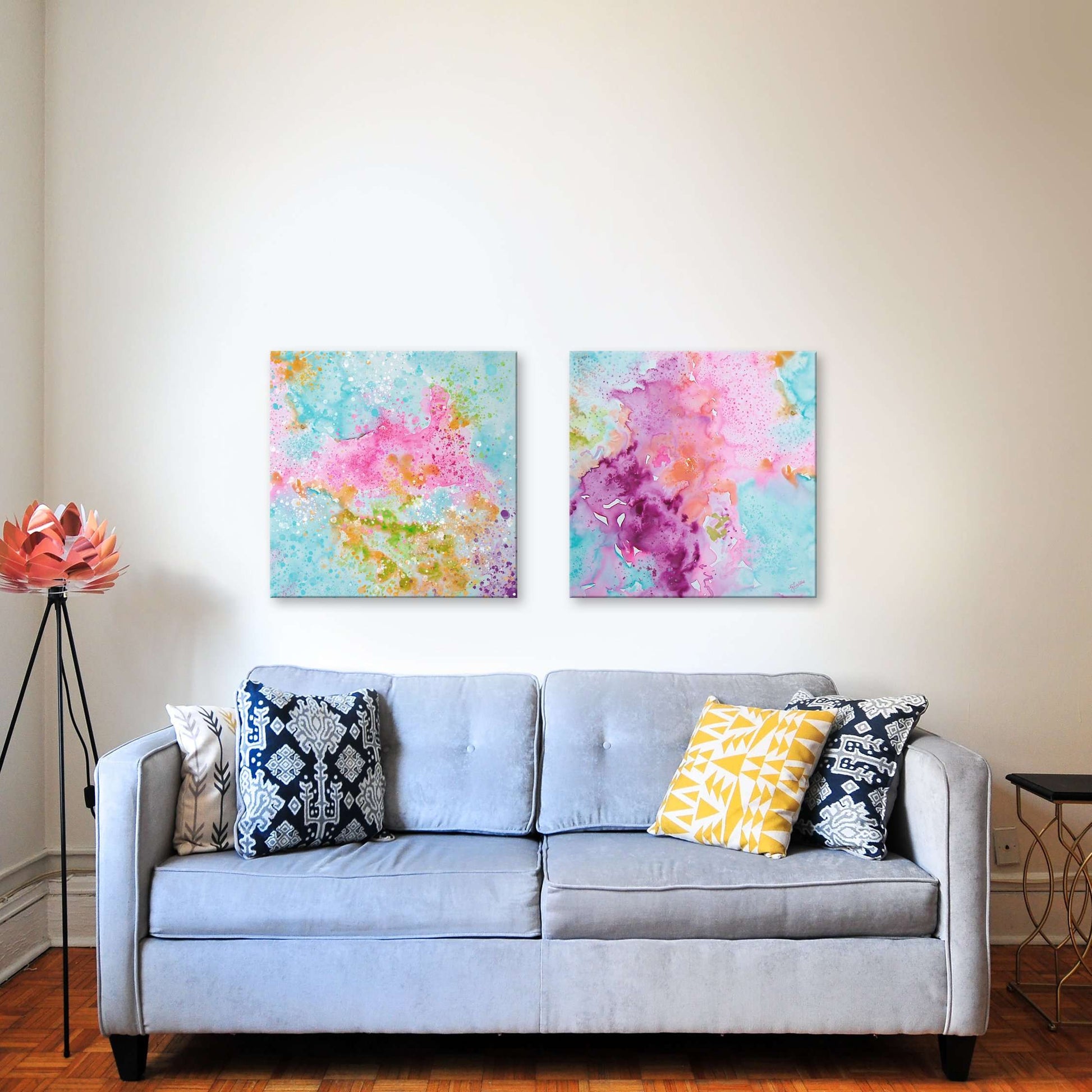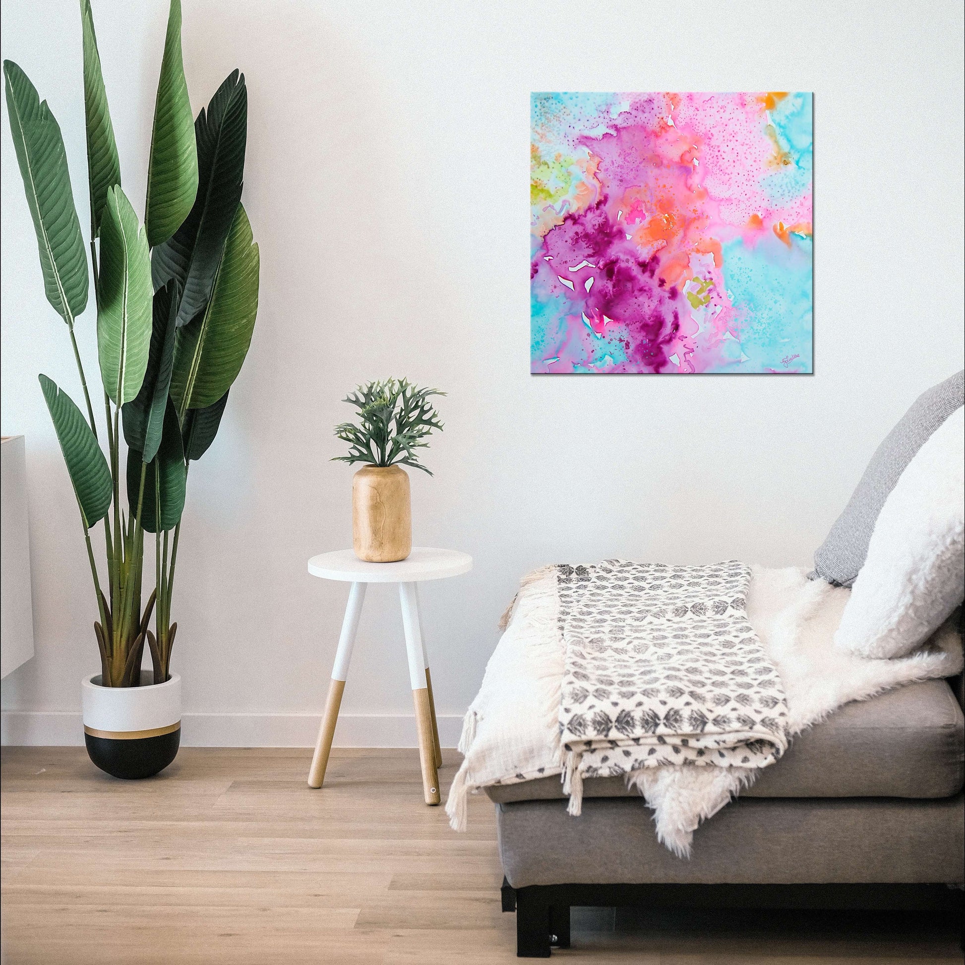 This painting will be printed onto one of our premium canvases and then stretched on a wooden frame of 1.5" x 1.5" stretcher bars. Your canvas print will be delivered to you "ready to hang" with pre-attached hanging wire, mounting hooks, and nails.