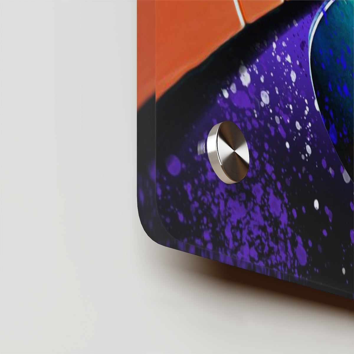 Acrylic art panels are a modern way to display beautiful and vibrant art that looks like it's embedded in clear glass. They have a clear, glossy acrylic surface and a white vinyl backing. Four silver stand-offs make it very easy to mount to the wall. This colorful panel stands enhances any room and makes a fantastic gift.