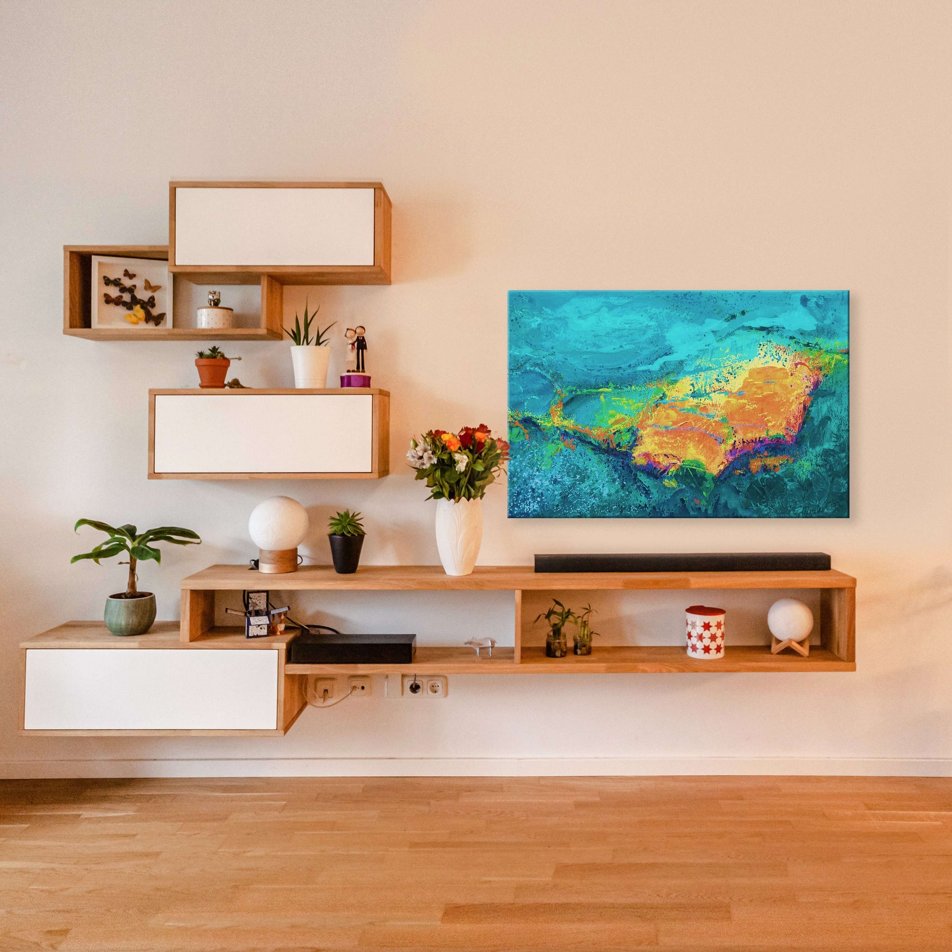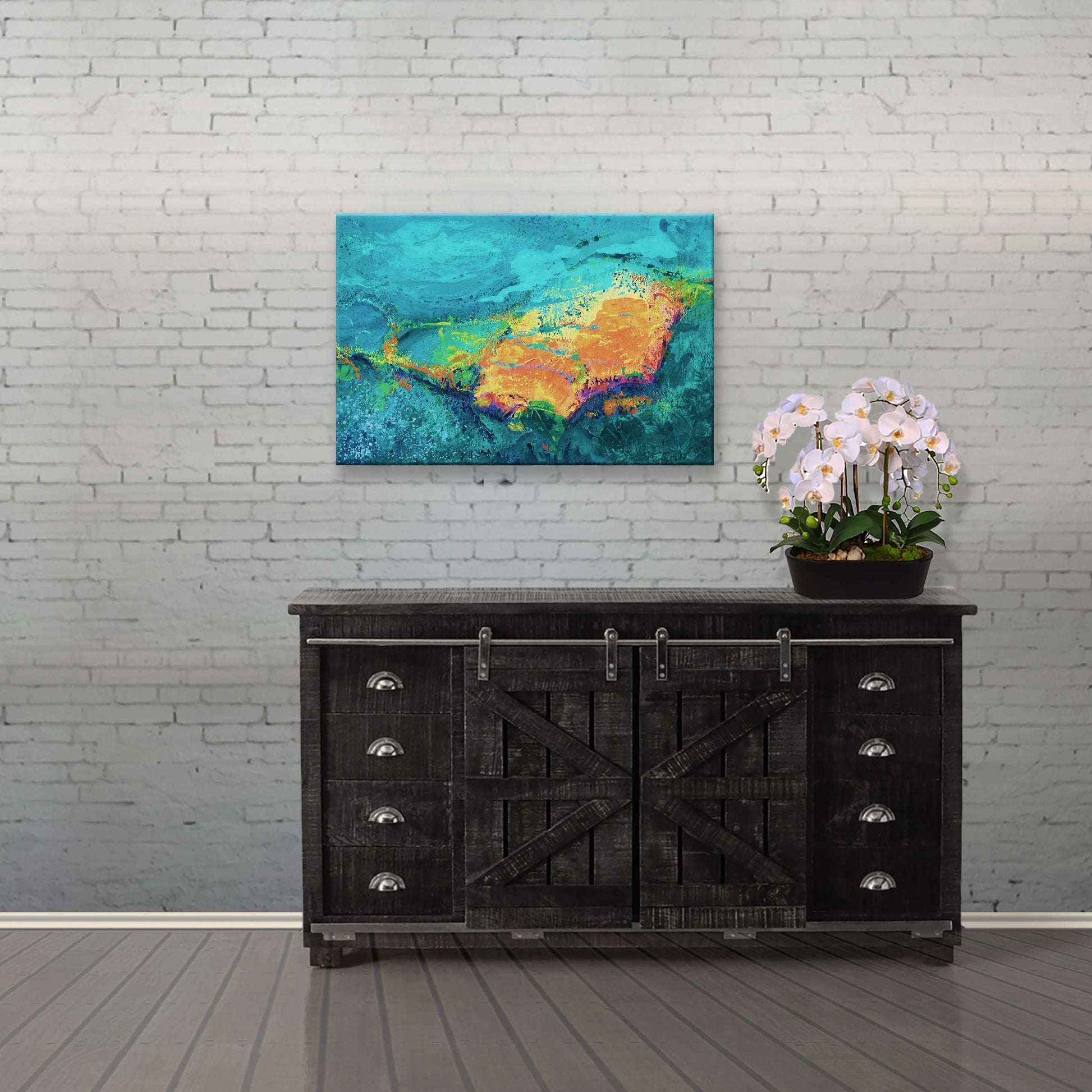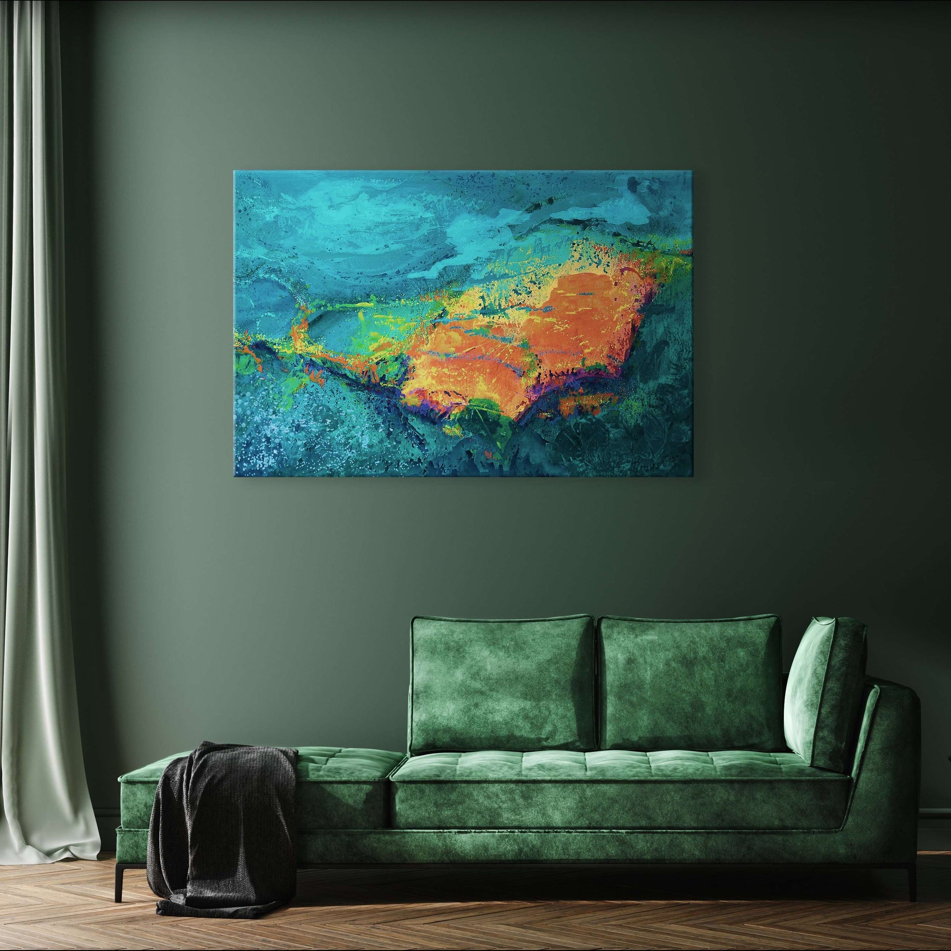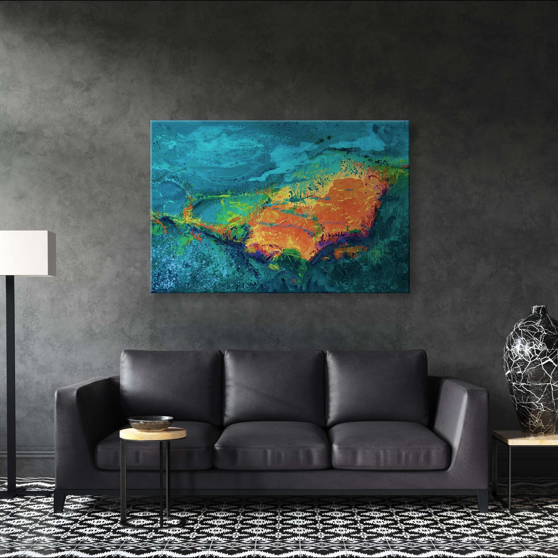 This painting will be printed onto one of our premium canvases and then stretched on a wooden frame of 1.5" x 1.5" stretcher bars. Your canvas print will be delivered to you "ready to hang" with pre-attached hanging wire, mounting hooks, and nails.