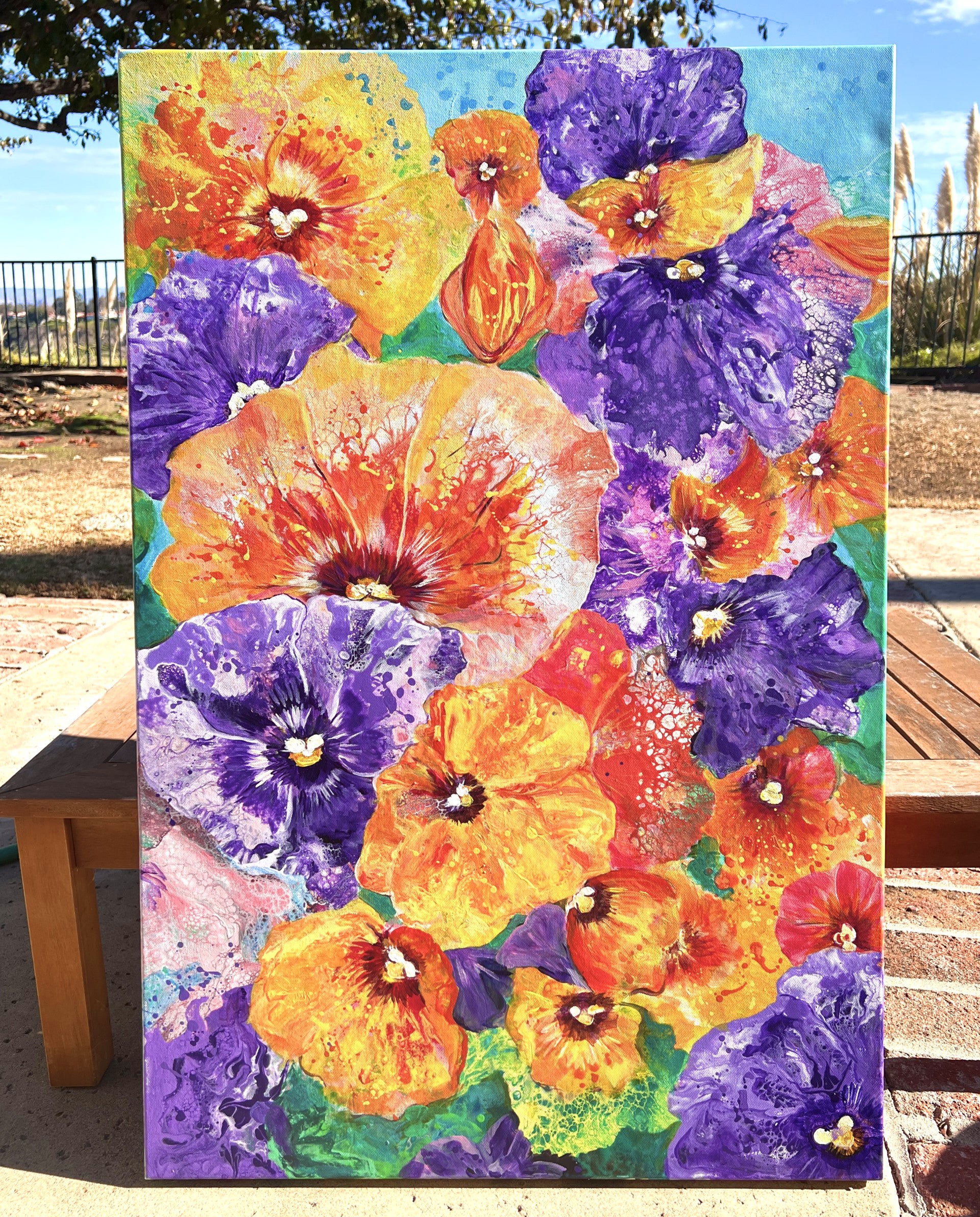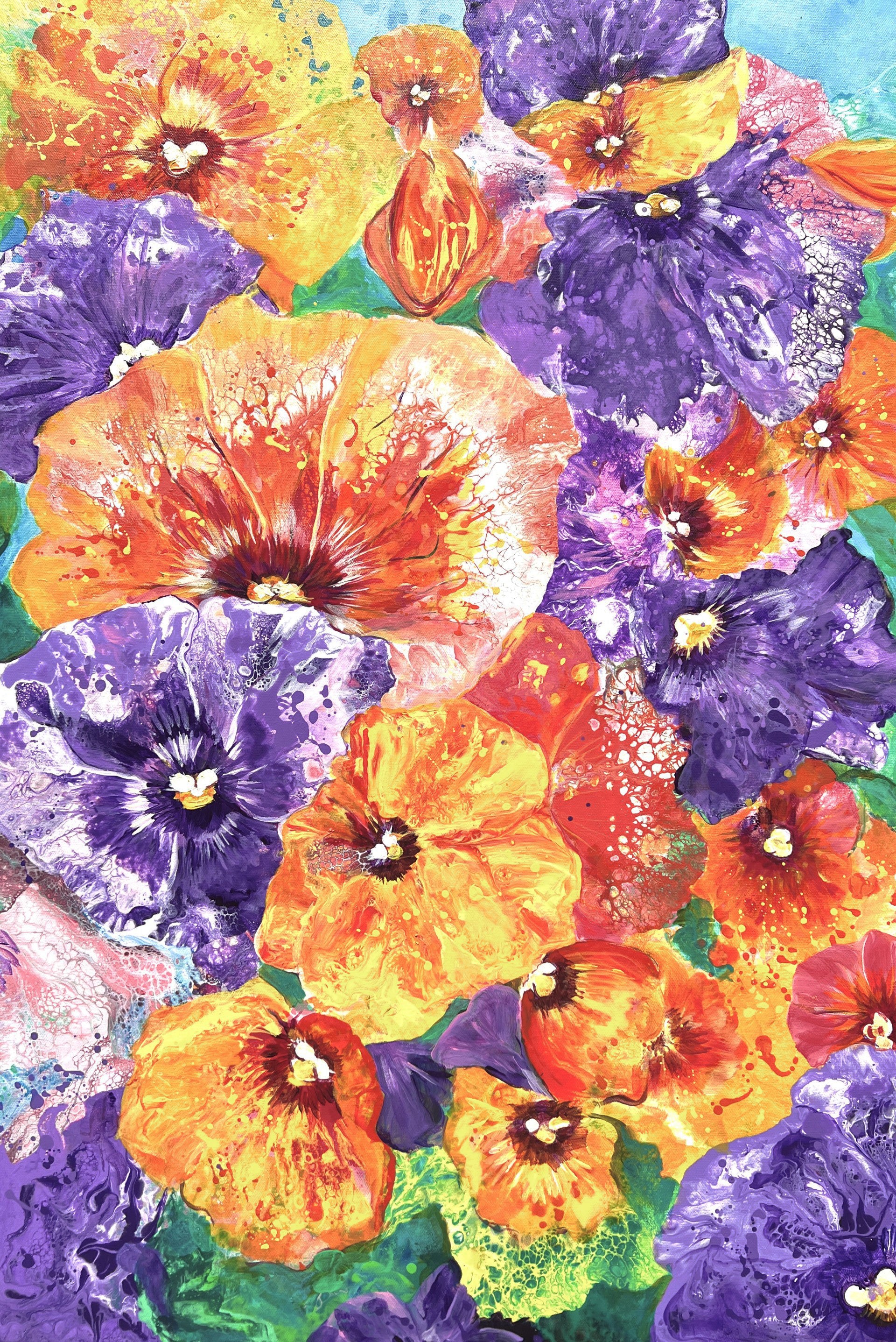"Bed of Pansies" - 36"x 24"