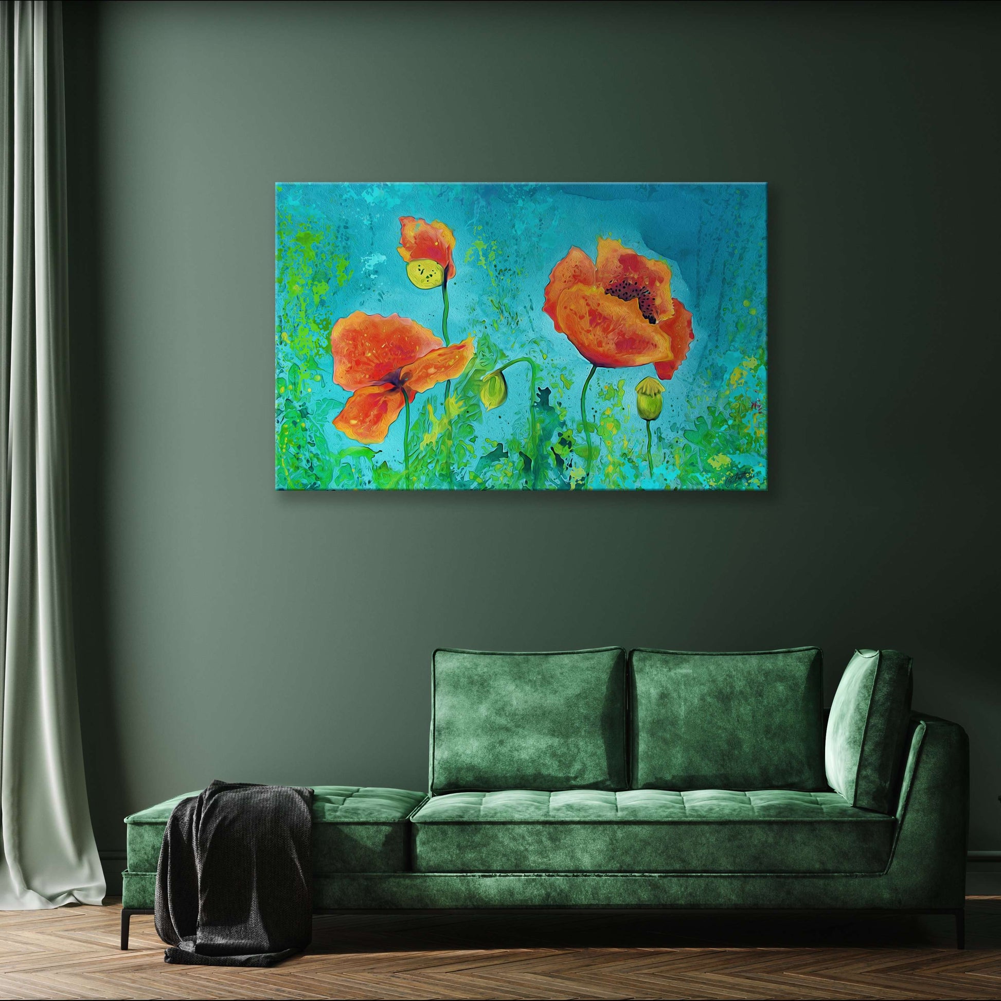 This painting will be printed onto one of our premium canvases and then stretched on a wooden frame of 1.5" x 1.5" stretcher bars. Your canvas print will be delivered to you "ready to hang" with pre-attached hanging wire, mounting hooks, and nails.