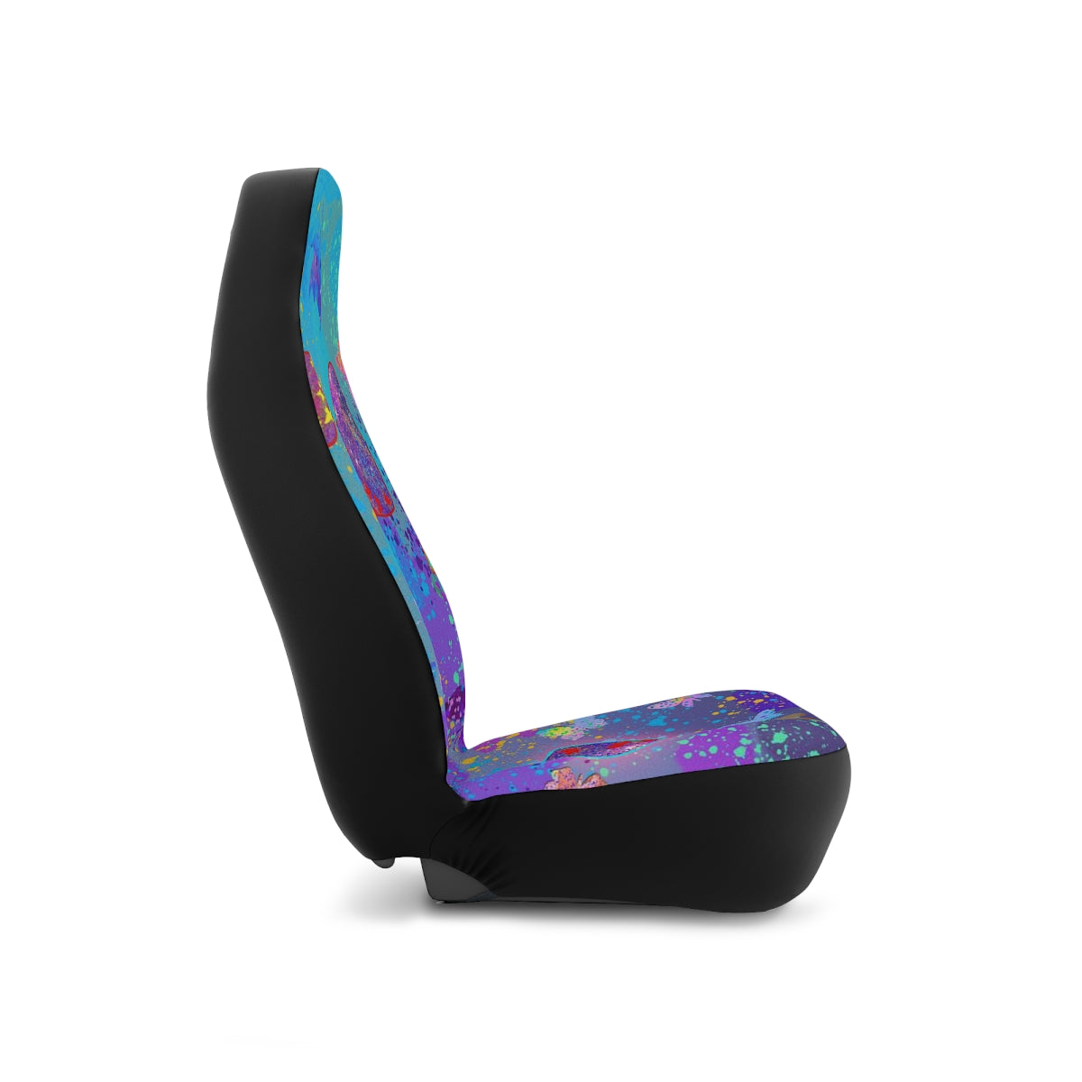 Add a custom spin on any car with these boldly colored seat covers. Made with top-tier, thick polyester fabric for long-lasting durability. These seat covers come with an elastic fastening system that delivers a secure, snug fit that is tool-free and easy to install. Both covers feature identical designs.