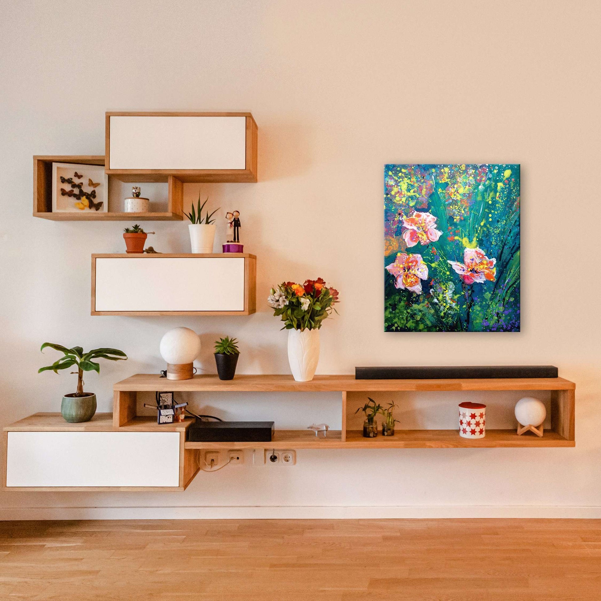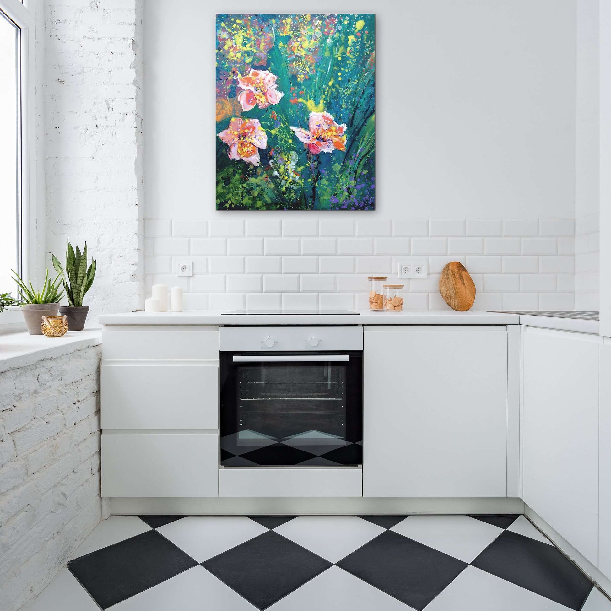 This painting will be printed onto one of our premium canvases and then stretched on a wooden frame of 1.5" x 1.5" stretcher bars. Your canvas print will be delivered to you "ready to hang" with pre-attached hanging wire, mounting hooks, and nails.