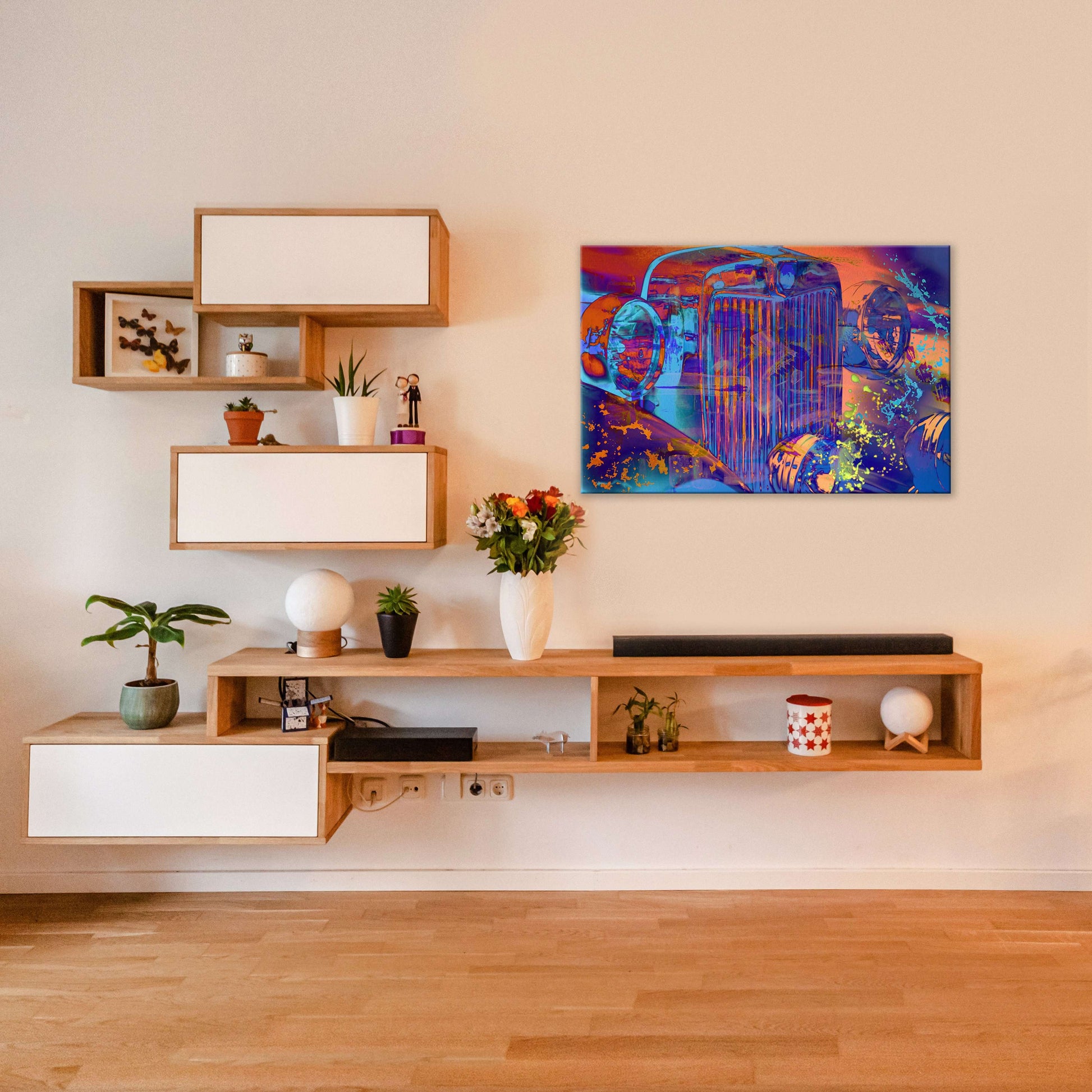 This painting will be printed onto one of our premium canvases and then stretched on a wooden frame of 1.5" x 1.5" stretcher bars. Your canvas print will be delivered to you "ready to hang" with pre-attached hanging wire, mounting hooks, and nails.