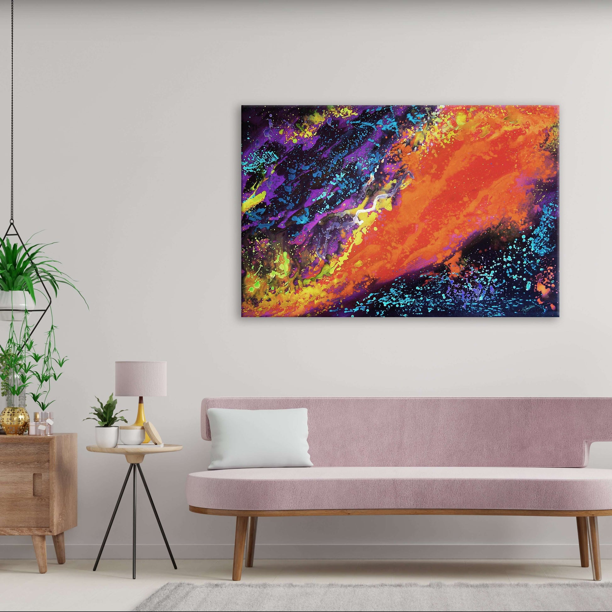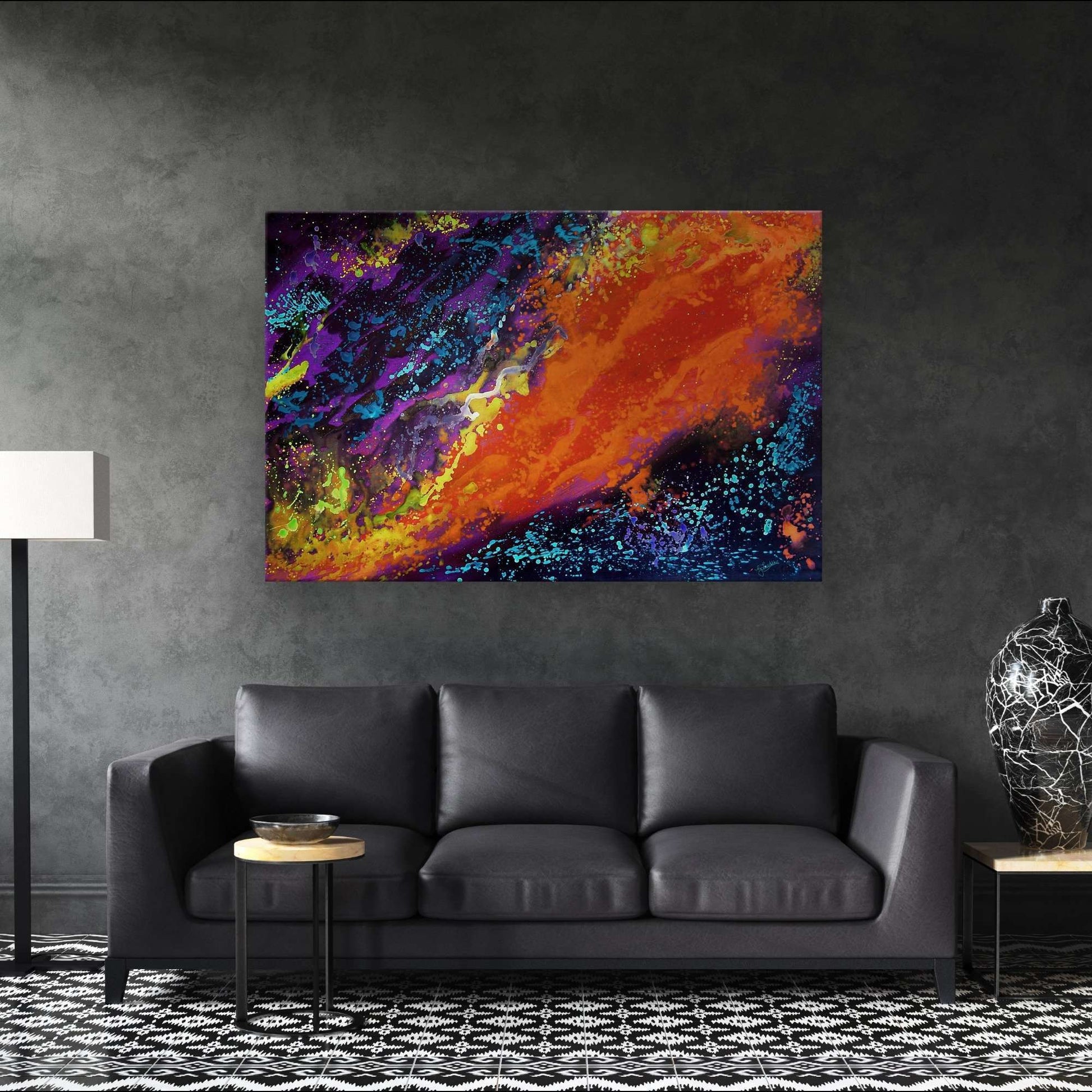 This painting will be printed onto one of our premium canvases and then stretched on a wooden frame of 1.5" x 1.5" stretcher bars. Your canvas print will be delivered to you "ready to hang" with pre-attached hanging wire, mounting hooks, and nails.