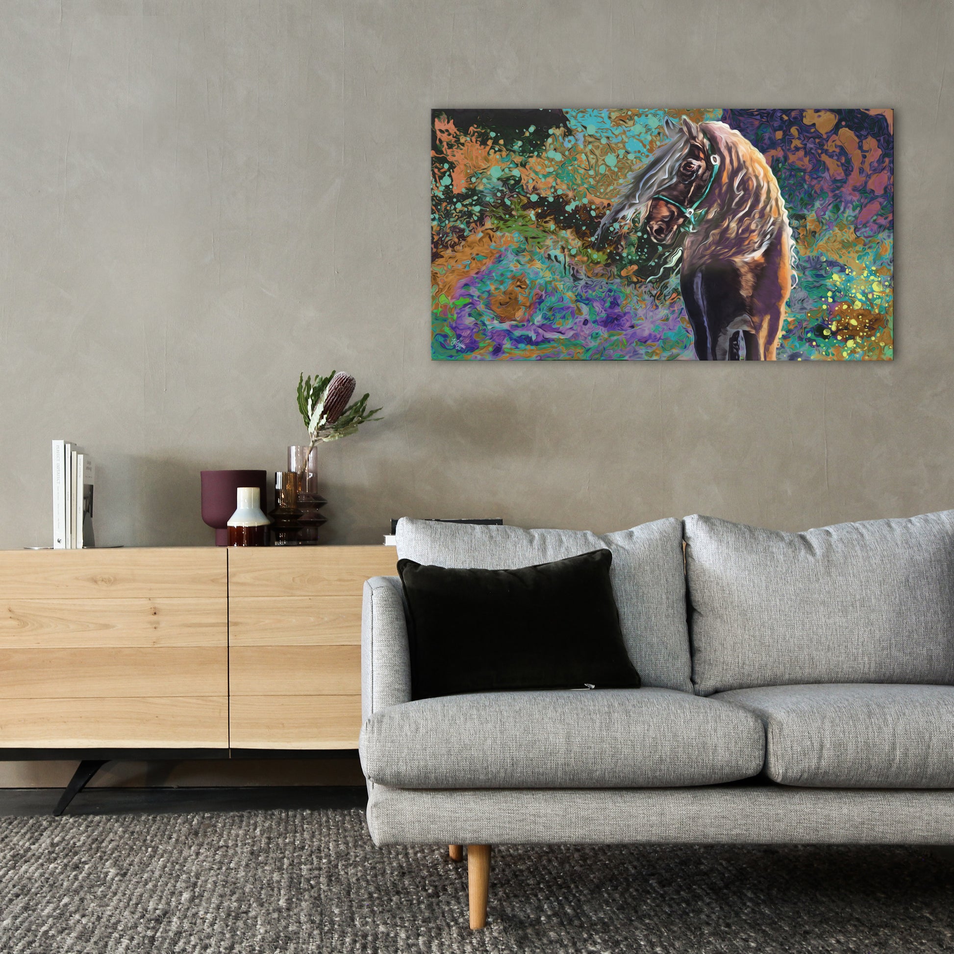 This painting will be printed onto one of our premium canvases and then stretched on a wooden frame of 1.5" x 1.5" stretcher bars. Your canvas print will be delivered to you "ready to hang" with pre-attached hanging wire, mounting hooks, and nails.