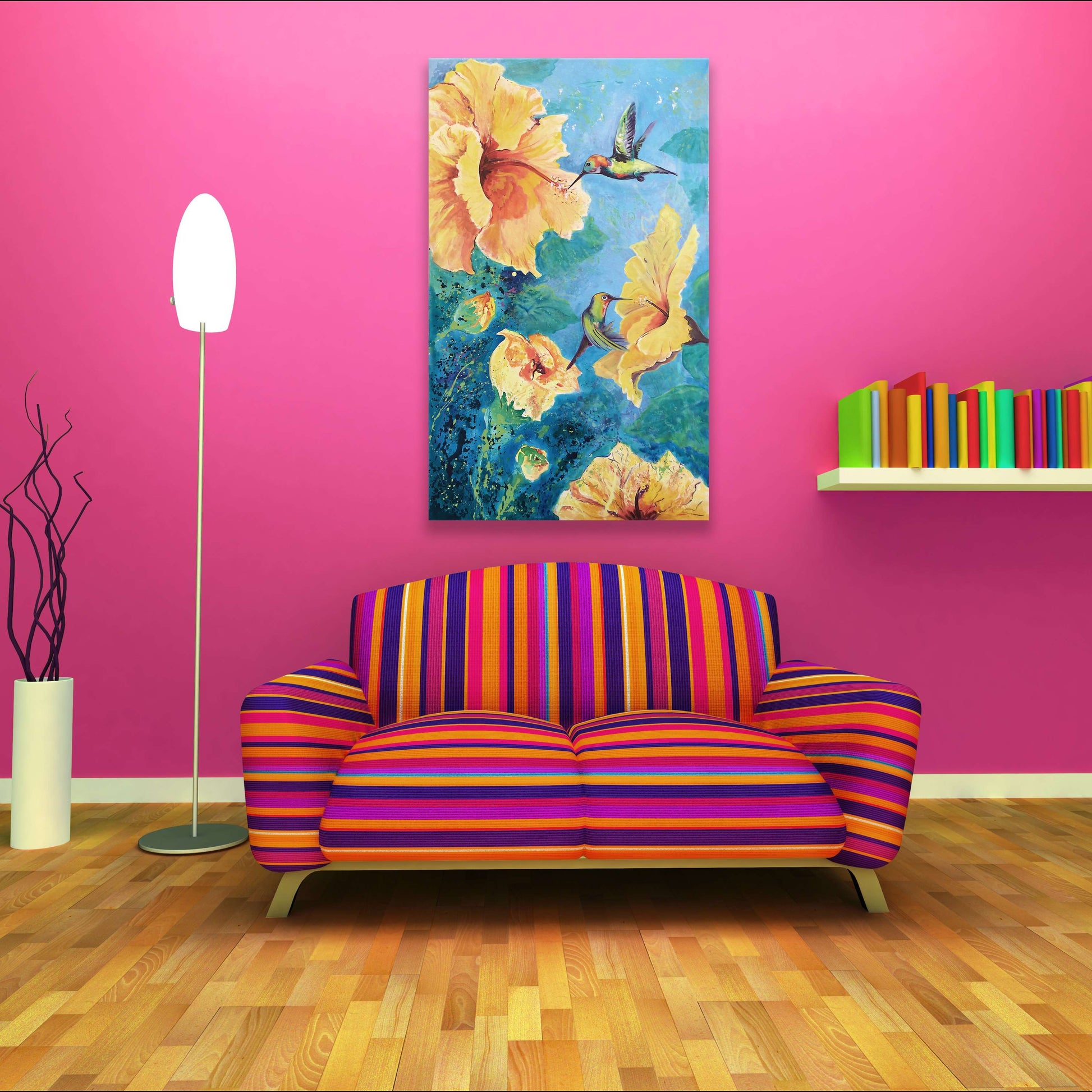 This painting will be printed onto one of our premium canvases and then stretched on a wooden frame of 1.5" x 1.5" stretcher bars. Your canvas print will be delivered to you "ready to hang" with pre-attached hanging wire, mounting hooks, and nails.