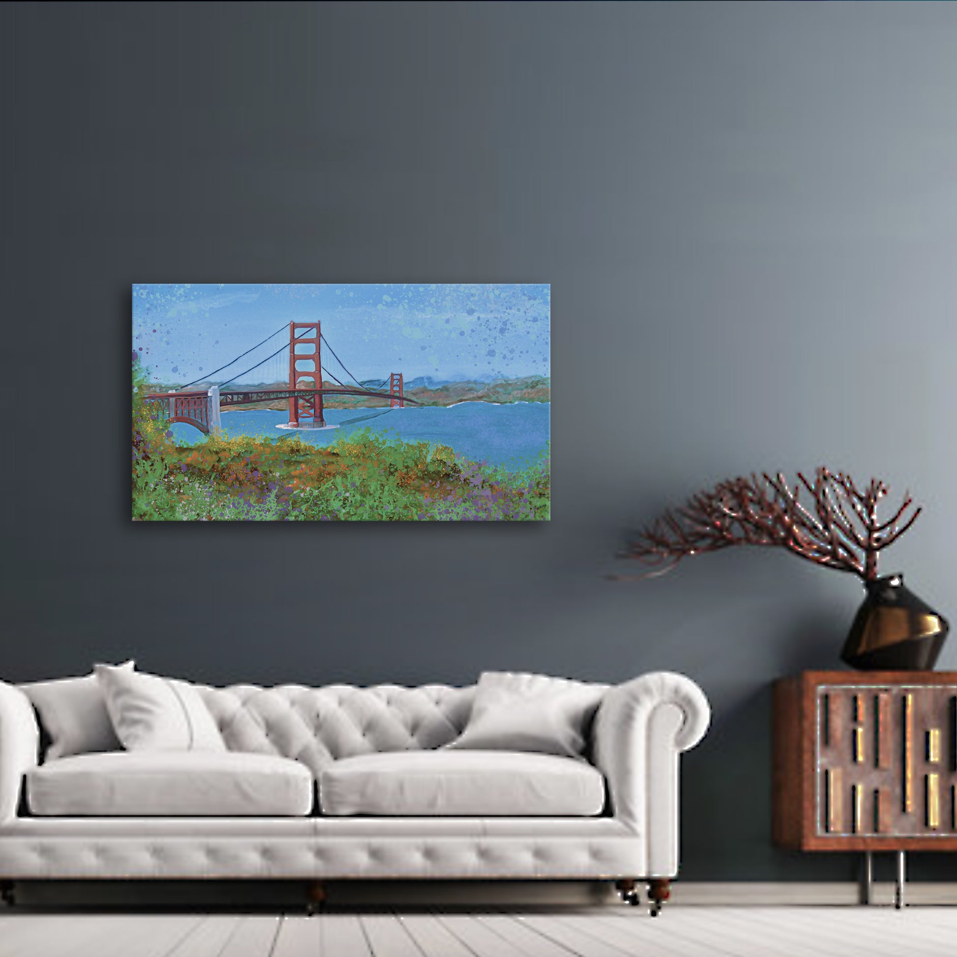 This painting will be printed onto one of our premium canvases and then stretched on a wooden frame of 1.5" x 1.5" stretcher bars. Your canvas print will be delivered to you "ready to hang" with pre-attached hanging wire, mounting hooks, and nails.