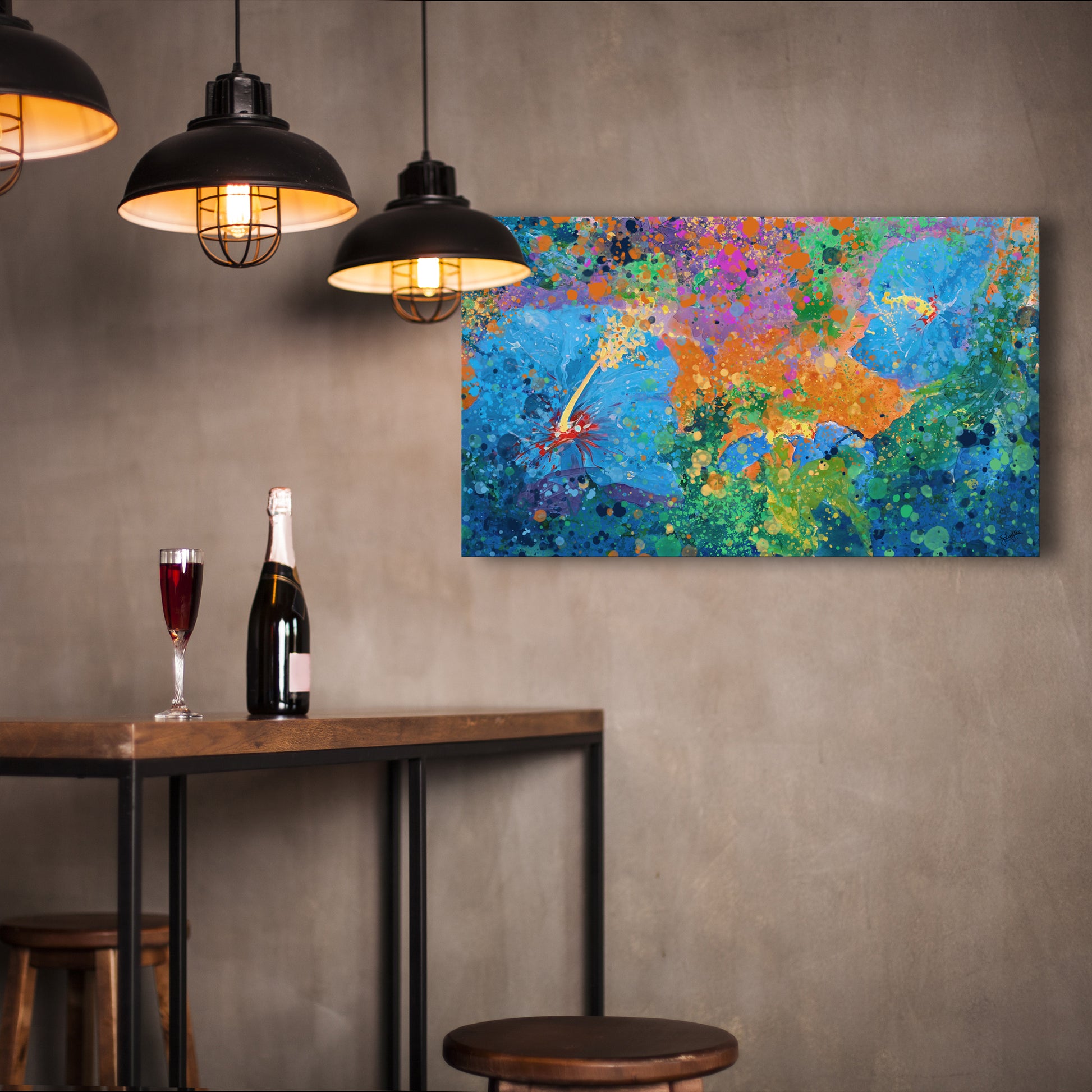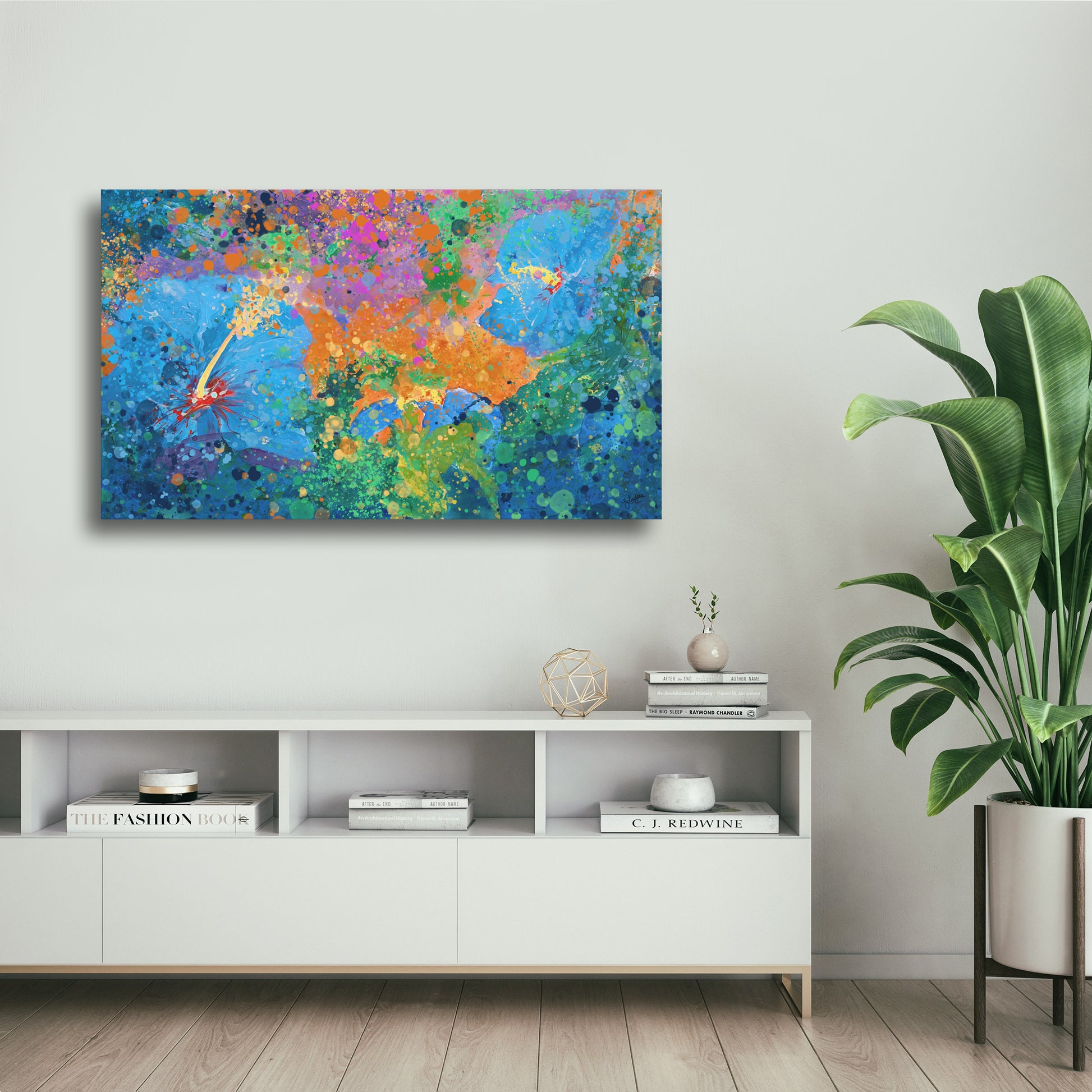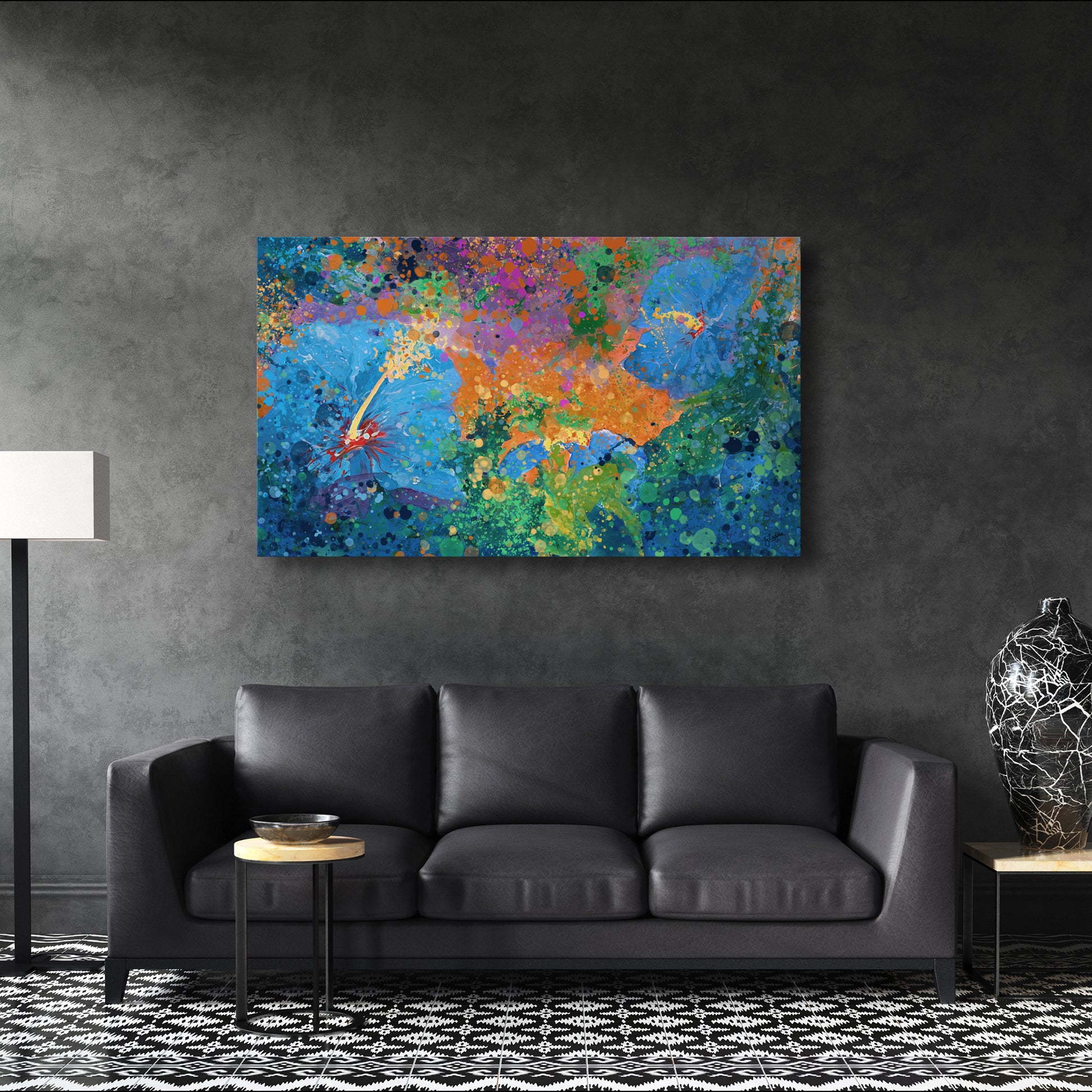 This painting will be printed onto one of our premium canvases and then stretched on a wooden frame of 1.5" x 1.5" stretcher bars. Your canvas print will be delivered to you "ready to hang" with pre-attached hanging wire, mounting hooks, and nails.