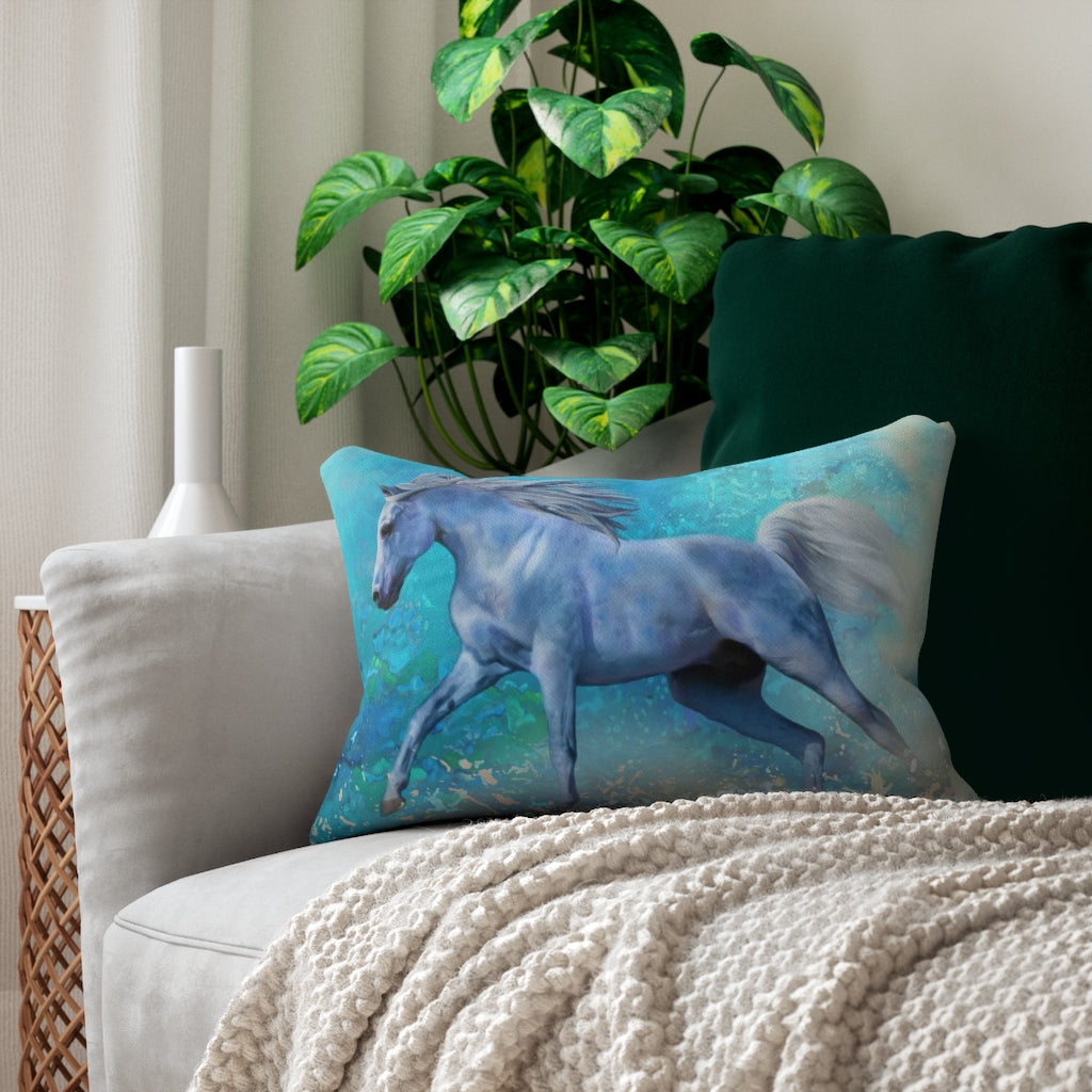 Room accents shouldn't be underrated. These beautiful indoor horse pillows in various sizes serve as statement pieces, creating a personalized environment. Add this beautiful spun-polyester lumbar pillow to your home decor pieces today. It comes with a stuffing pillow included. The casing is made of a spun polyester fabric that is inherently mildew and water-resistant. It has a hidden beige zipper to maintain a finished and stylish look.