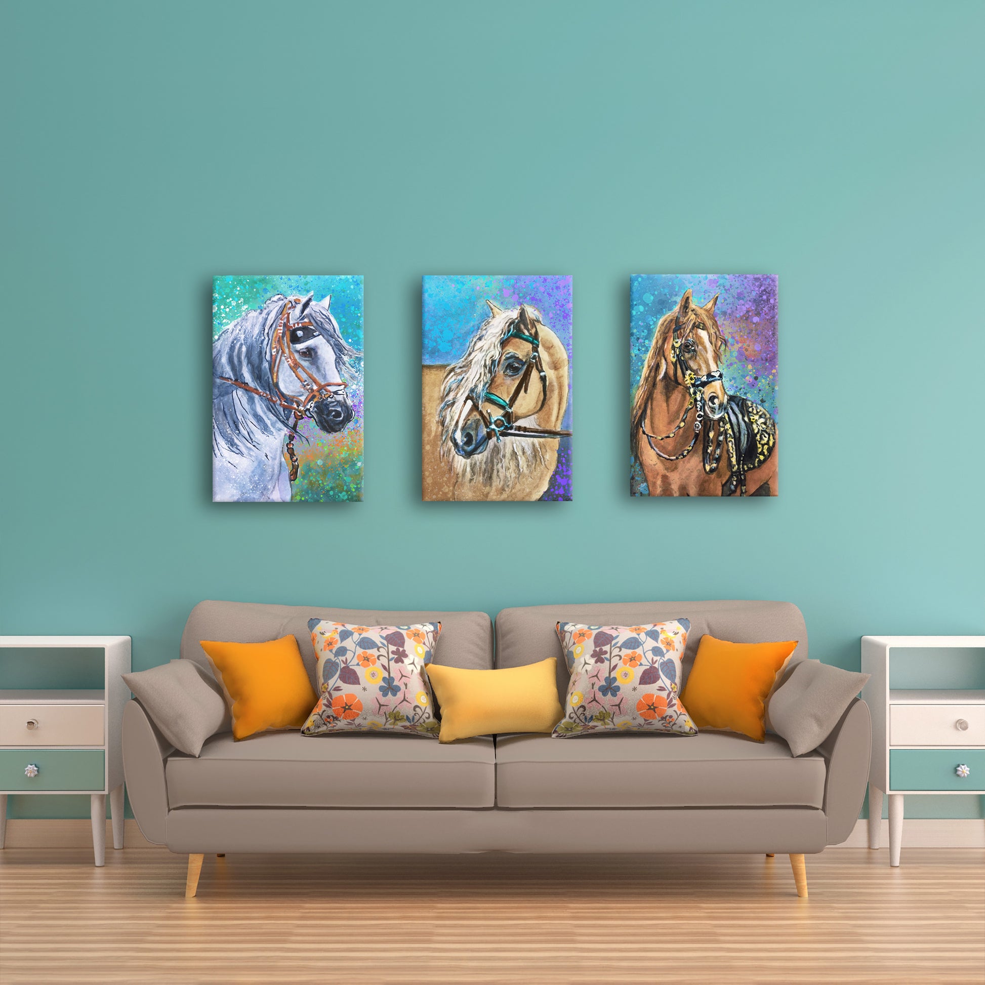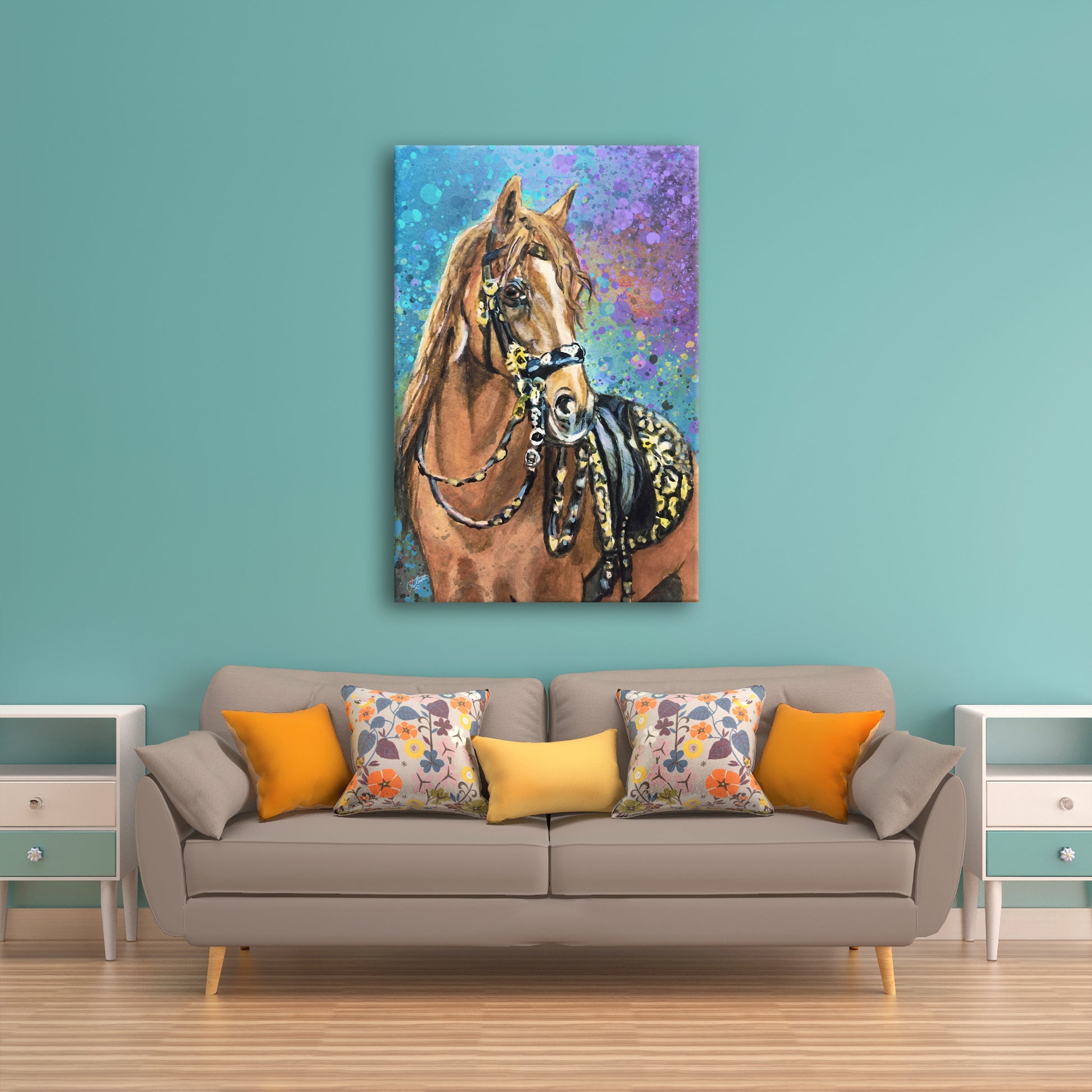 This painting will be printed onto one of our premium canvases and then stretched on a wooden frame of 1.5" x 1.5" stretcher bars. Your canvas print will be delivered to you "ready to hang" with pre-attached hanging wire, mounting hooks, and nails.