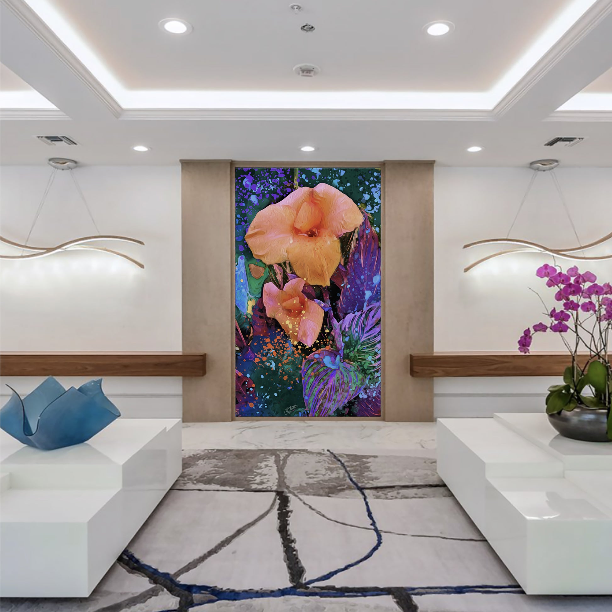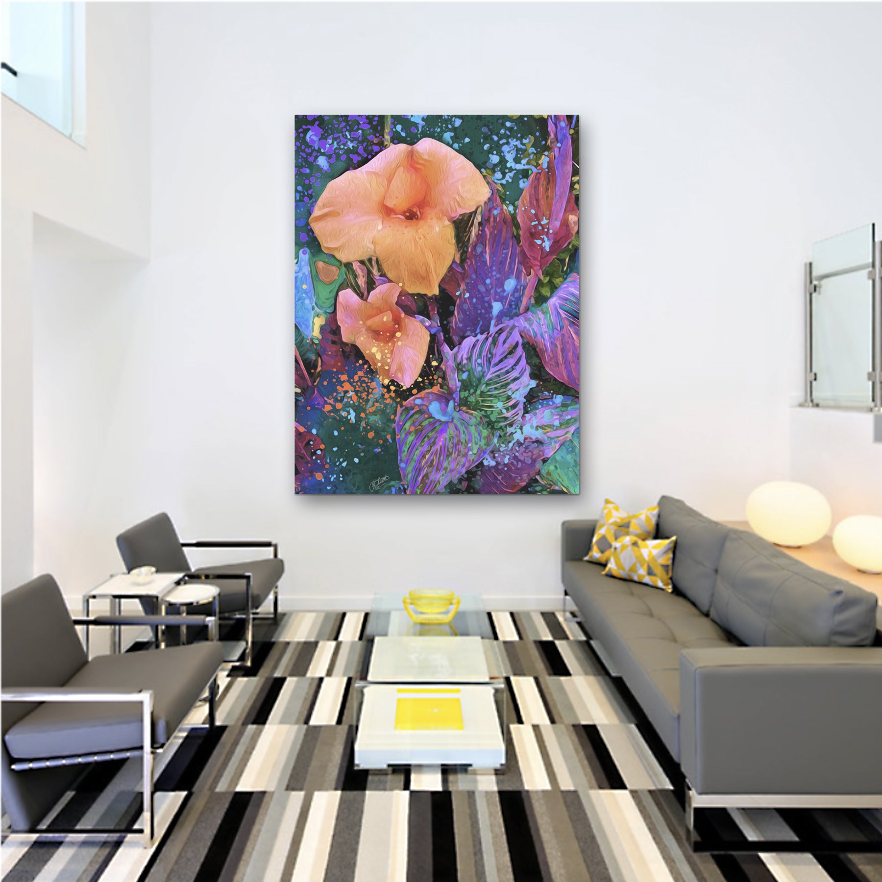 This painting will be printed onto one of our premium canvases and then stretched on a wooden frame of 1.5" x 1.5" stretcher bars. Your canvas print will be delivered to you "ready to hang" with pre-attached hanging wire, mounting hooks, and nails.