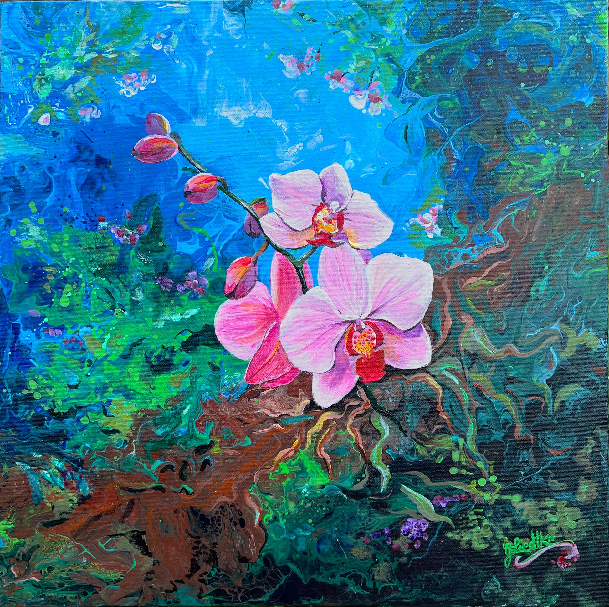 "Pink Orchid " - 18"x 18" Fluid Acrylic Series