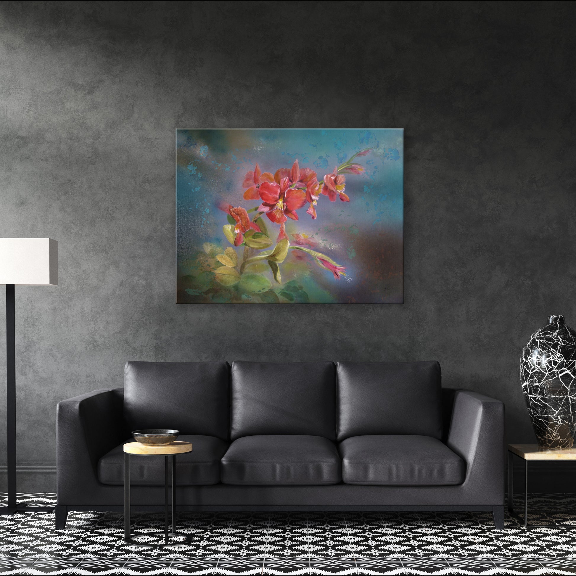 This painting will be printed onto one of our premium canvases and then stretched on a wooden frame of 1.5" x 1.5" stretcher bars. Your canvas print will be delivered to you "ready to hang" with pre-attached hanging wire, mounting hooks, and nails.