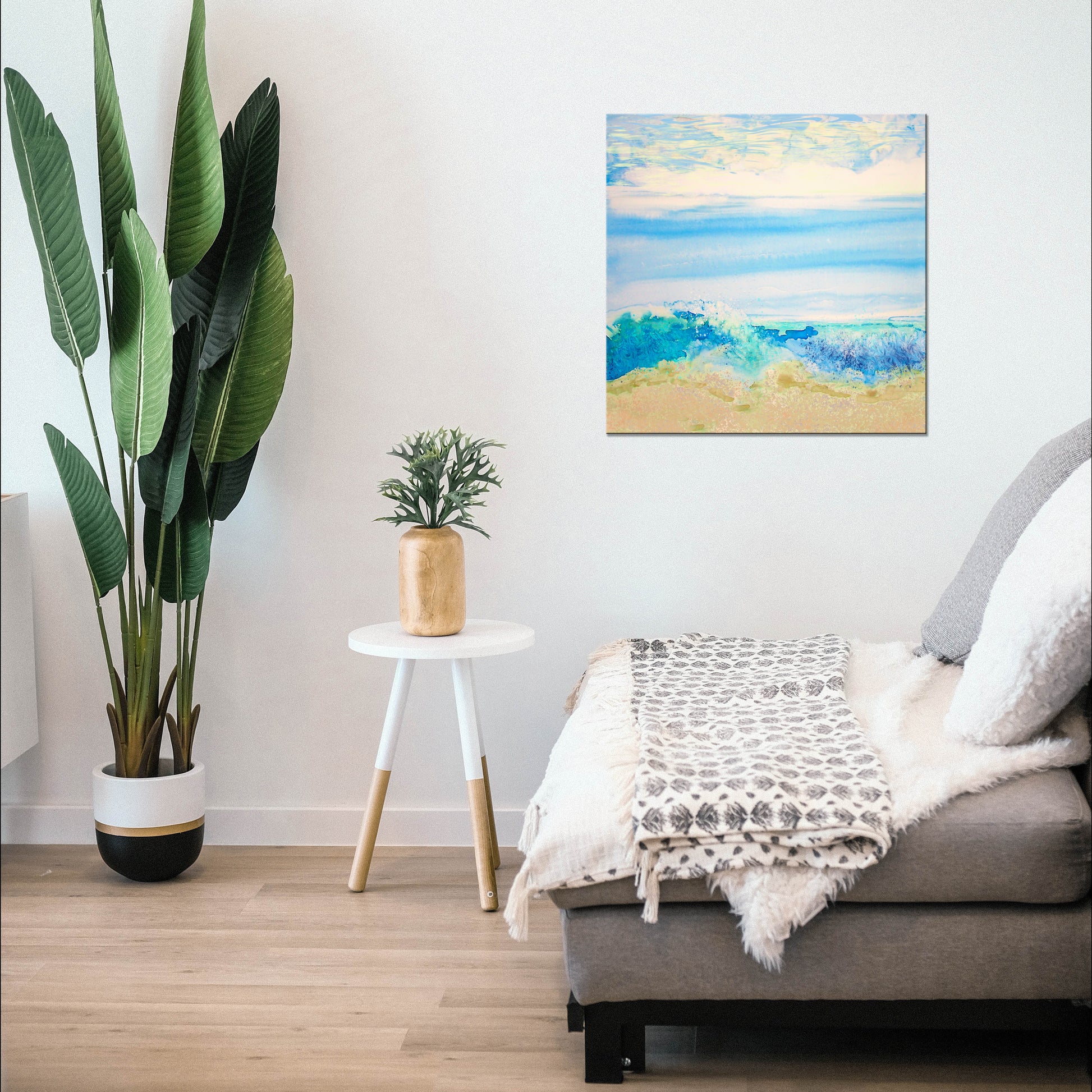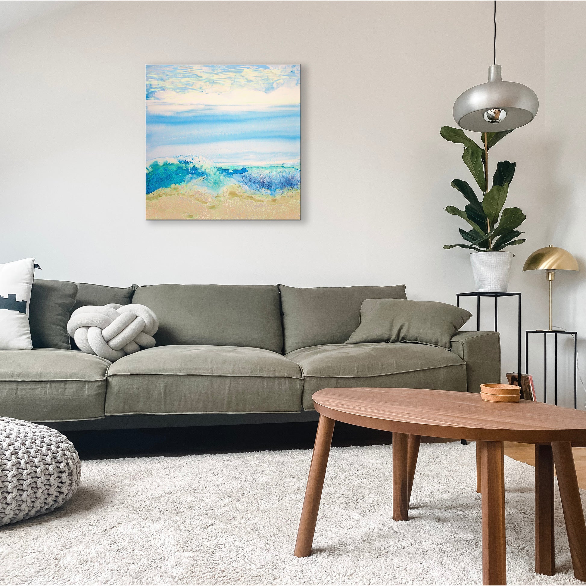 This painting will be printed onto one of our premium canvases and then stretched on a wooden frame of 1.5" x 1.5" stretcher bars. Your canvas print will be delivered to you "ready to hang" with pre-attached hanging wire, mounting hooks, and nails.