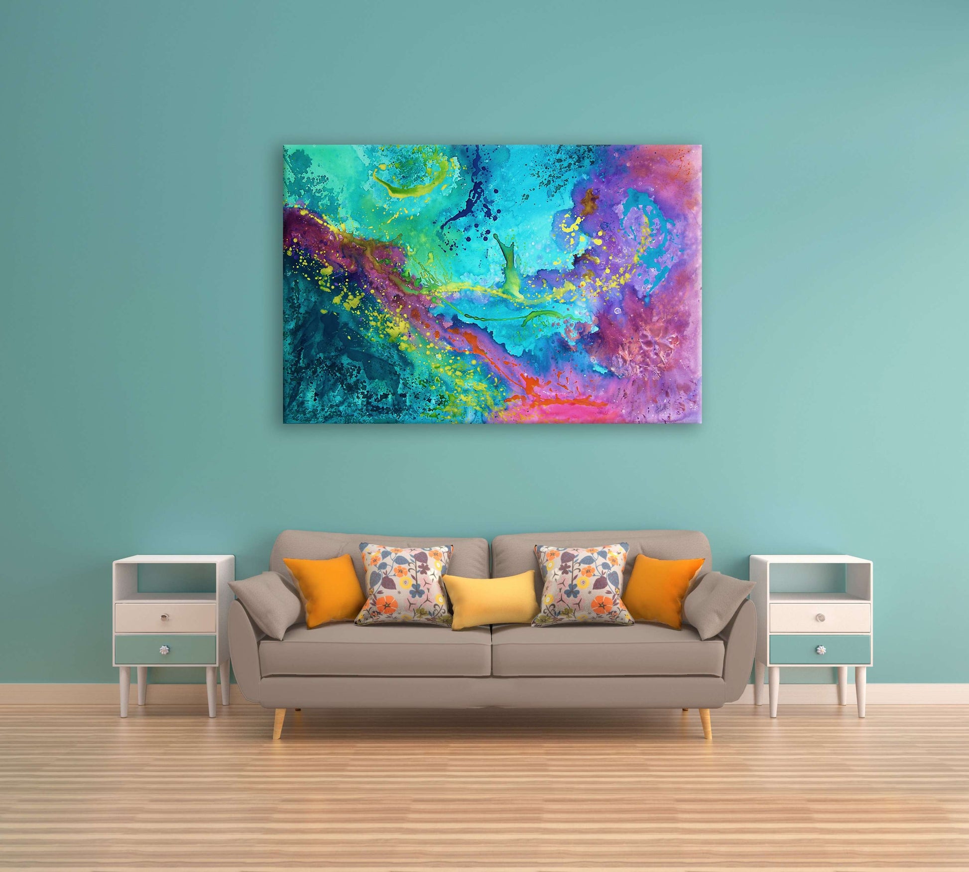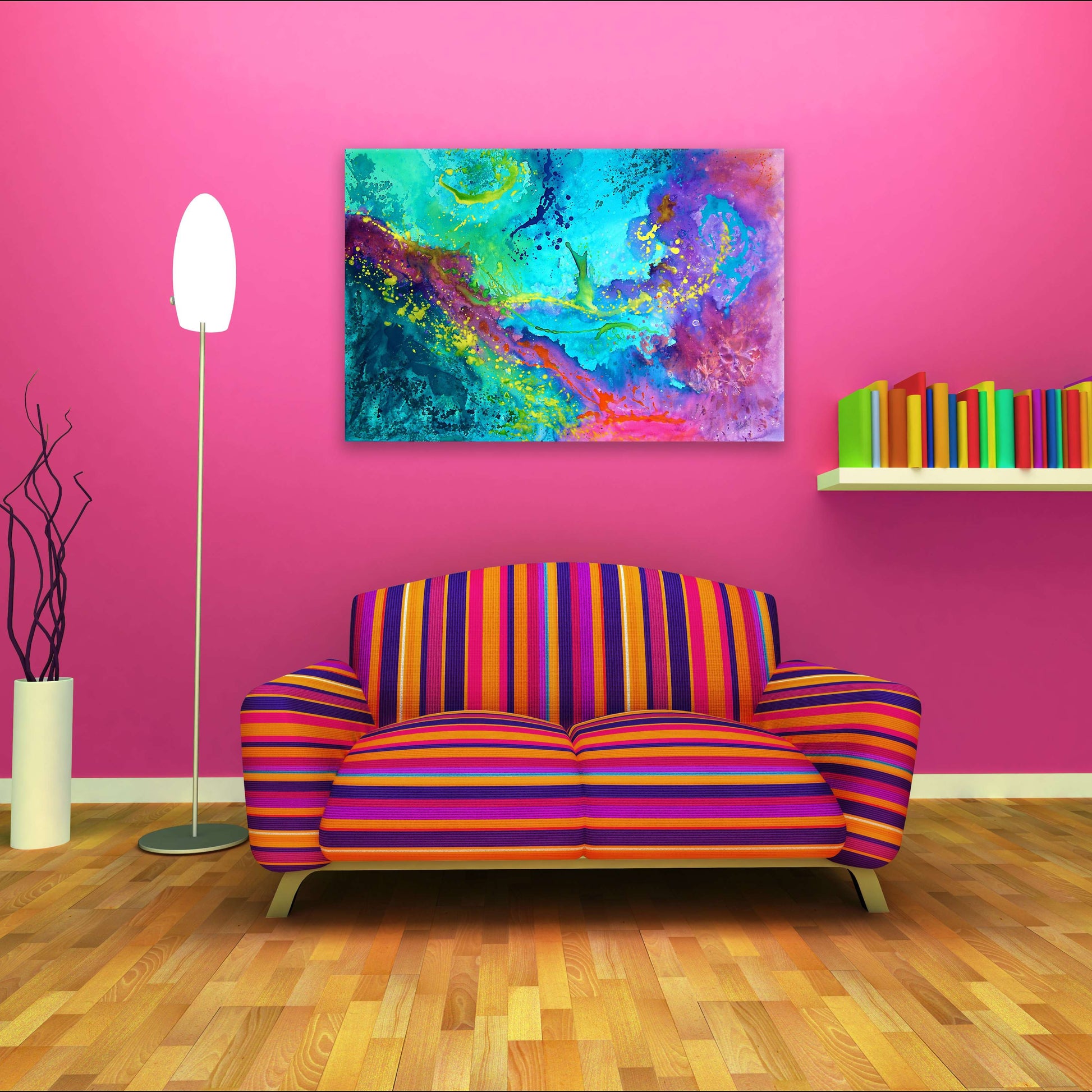 This painting will be printed onto one of our premium canvases and then stretched on a wooden frame of 1.5" x 1.5" stretcher bars. Your canvas print will be delivered to you "ready to hang" with pre-attached hanging wire, mounting hooks, and nails.