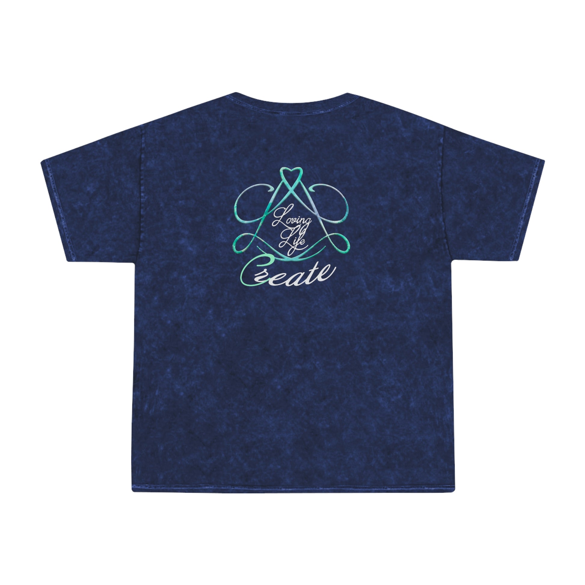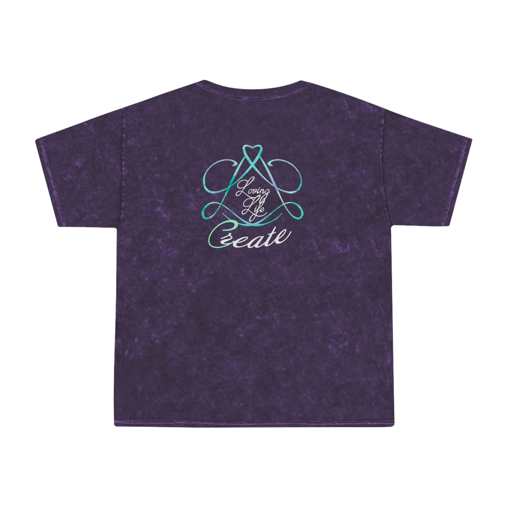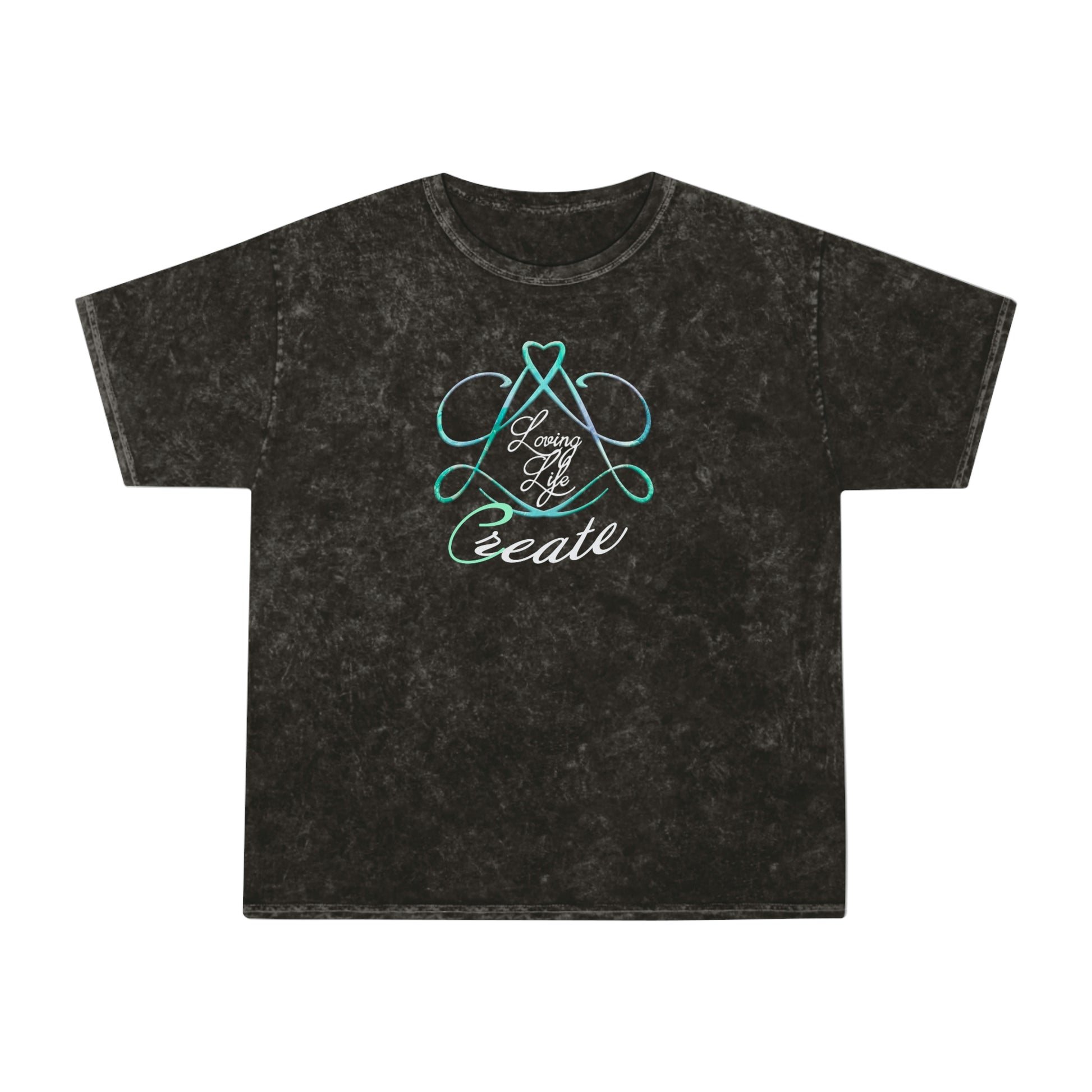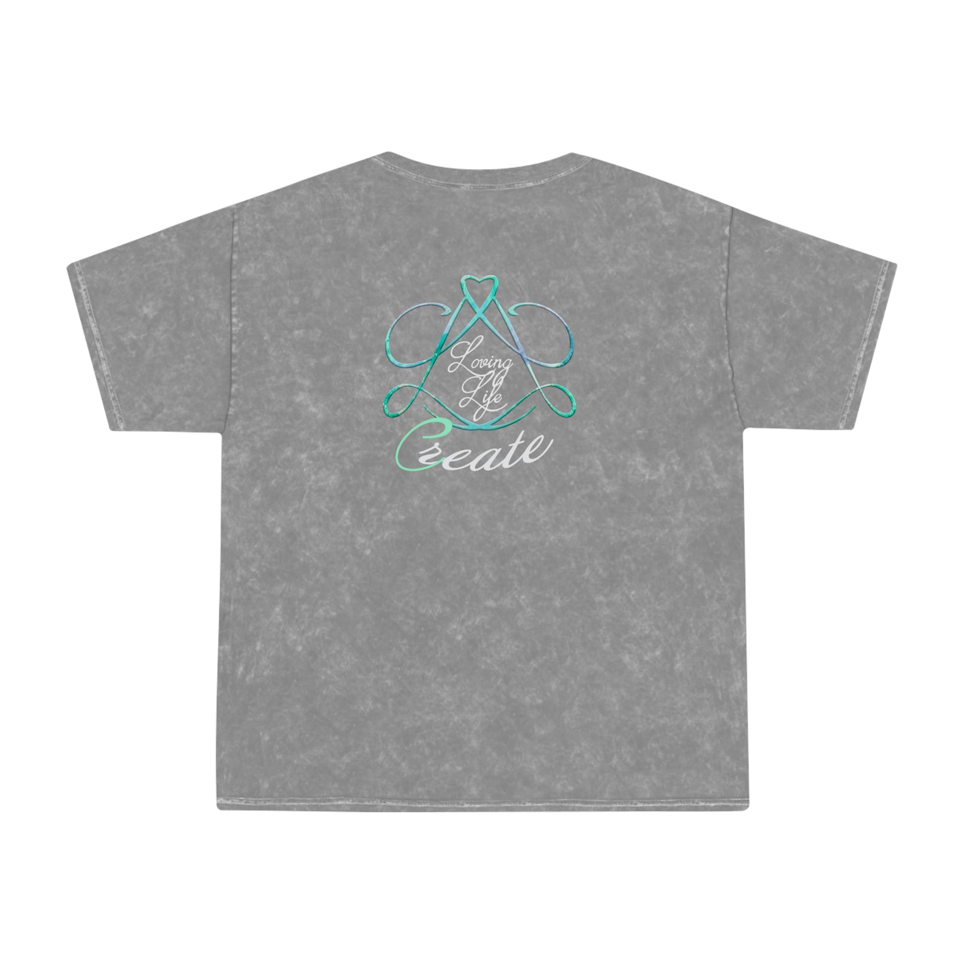 Made famous in the 80s by the underground music scene, the mineral wash tee is now making its return, big time. It is the perfect fit for the uplifting LOVING LIFE designs by artist G. Liedtke. This is the "Create" variant. The 100% soft, heavyweight cotton construction and the seamless, double-needle crew collar give this tee a superior feeling of comfort and an impressive durability factor. Each mineral wash tee is hand-dyed with superior colorfastness for great looks that are long-lasting.