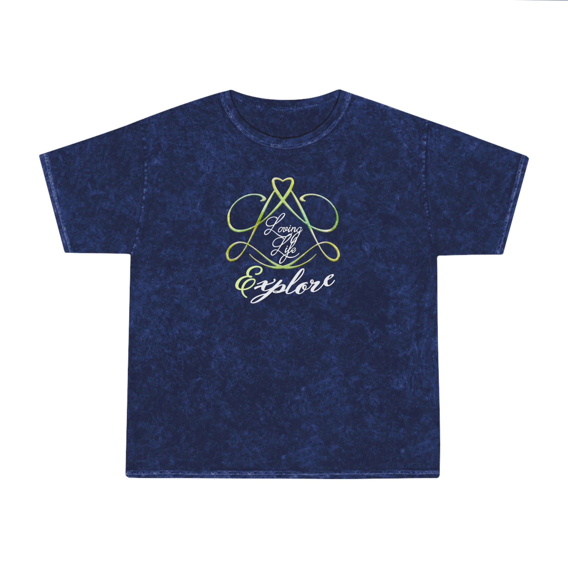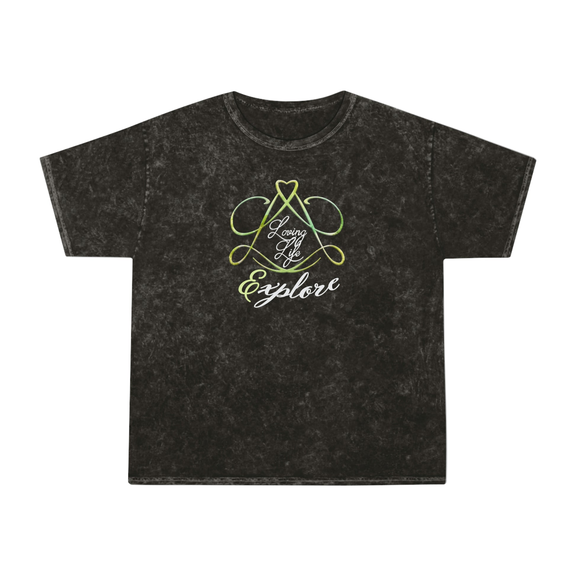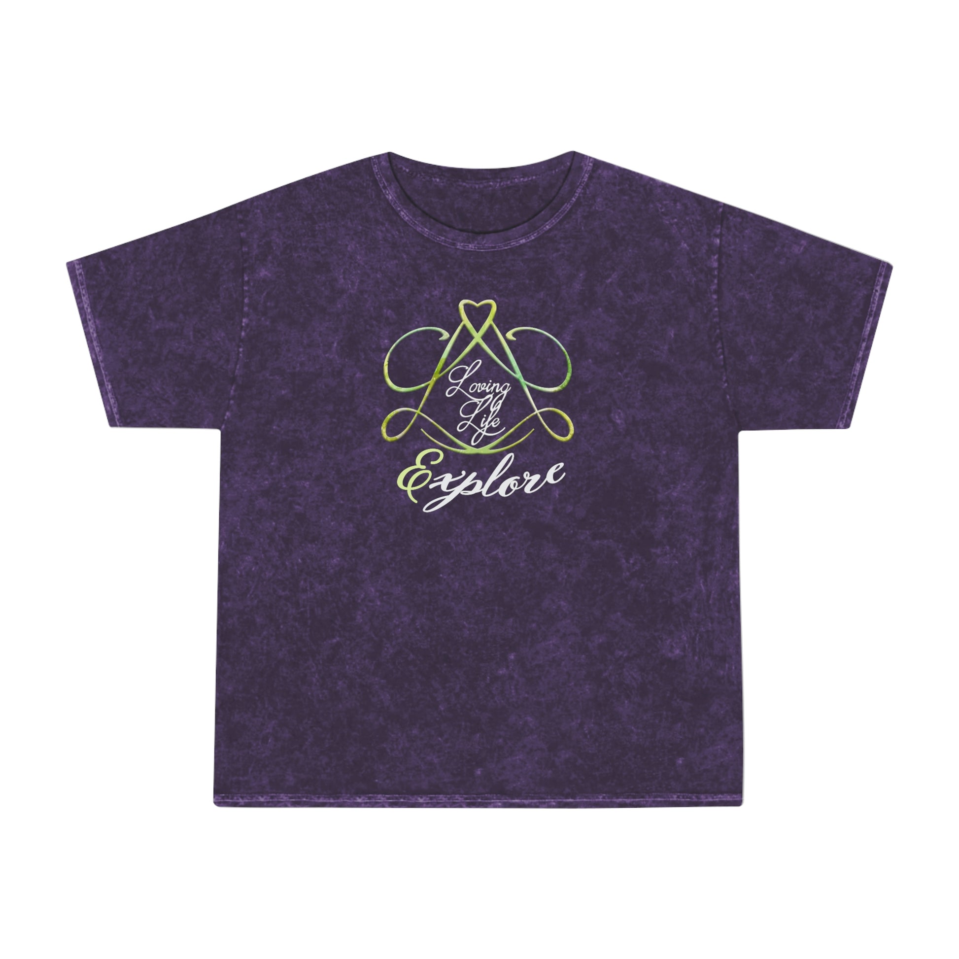 Made famous in the 80s by the underground music scene, the mineral wash tee is now making its return, big time. It is the perfect fit for the uplifting LOVING LIFE designs by artist G. Liedtke. This is the "Explore" variant. The 100% soft, heavyweight cotton construction and the seamless, double-needle crew collar give this tee a superior feeling of comfort and an impressive durability factor. Each mineral wash tee is hand-dyed with superior colorfastness for great looks that are long-lasting.