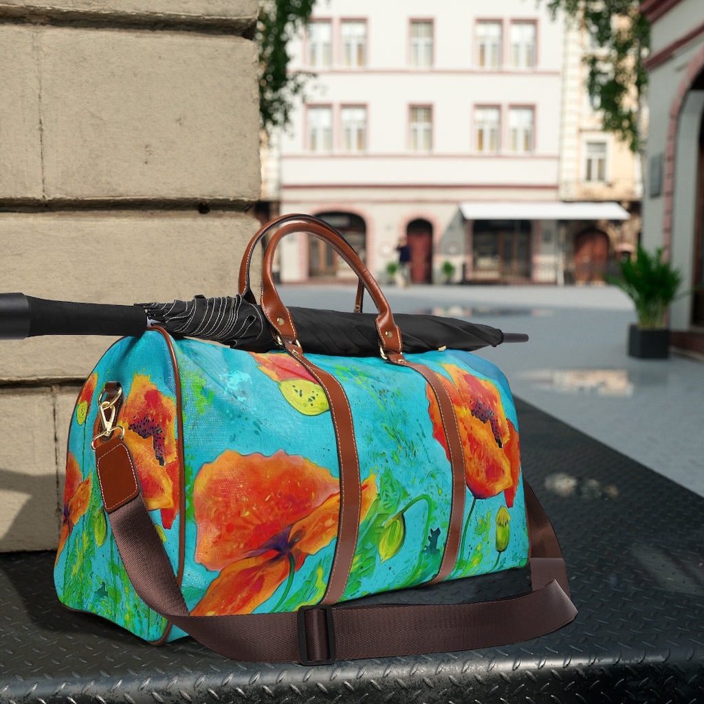 This custom-made travel bag is all about style and comes in a range of vibrant colors and designs. Made with high-grade waterproof fabric, this fun bag is not only striking, but also durable and practical. With plenty of room for all your essentials, you'll never have to worry about leaving anything behind. With multiple compartments, a resilient carrying handle, and an adjustable shoulder strap, it's the perfect companion for all your adventures.